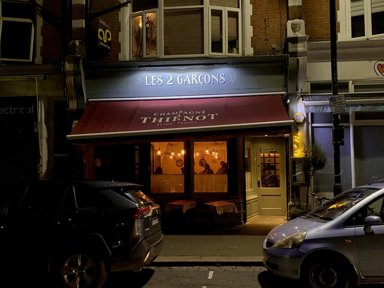 "Les 2 Garçons is one of those restaurants that glows. It’s a pulsating maroon lighthouse that runs on comforting confit duck and Crouch End locals who require a drip of its vin rouge. In the Venn diagram of fans of Pixar's Ratatouille, readers of The Sunday Times, and admirers of Keith Floyd, Les 2 Garçons is firmly in the middle. photo credit: Aleksandra Boruch photo credit: Aleksandra Boruch photo credit: Aleksandra Boruch Pause Unmute On any midweek evening this restaurant heaves with young families, champagne-clinking 70-somethings, and friends going all in on an indulgent French meal. It’s a typically quaint bistro with illustrated plates and adorable little hand-painted butter dishes. Your neighbouring table will more than likely ask you how the onion soup is (it's wonderful) or whether that’s the duck (it is, and back off)—not just out of innate British nosiness, but because you’re pretty much on each others’ laps in this place. photo credit: Aleksandra Boruch photo credit: Aleksandra Boruch photo credit: Aleksandra Boruch photo credit: Aleksandra Boruch Pause Unmute Don’t be surprised to see the chipper chef come out to explain the blackboard, serve your tartare, and stick around for a chat. He’s got the touch of a ballerina when it comes to a tarte fine aux pommes. That said, none of it is earth-shattering cooking. But nor is it trying to be. This is food and a restaurant that’s very difficult not to love, and not to bed in at—which is why absolutely everyone always wants to squeeze in. Food Rundown French Onion Soup Wearing a helmet of molten, gooey cheese and perfectly sweet and rich once you break through, this is exactly what you want from a French onion soup. We’d recommend a turn of pepper. photo credit: Aleksandra Boruch Duck Confit, Lentils, Mushrooms, & Garlic Butter A bistro is best judged by its classics and this duck passes with very good marks. The bird is rich and tender, although not quick falling off the bone. The lentils are suitably woofing with garlic and the variety of meaty mushrooms are far from an afterthought. photo credit: Aleksandra Boruch Tarte Fine Aux Pommes The thinking person’s apple tart: a little thinner, a little more refined, but still with a scoop of vanilla ice cream on top. Completely glorious. photo credit: Jake Missing" - Jake Missing