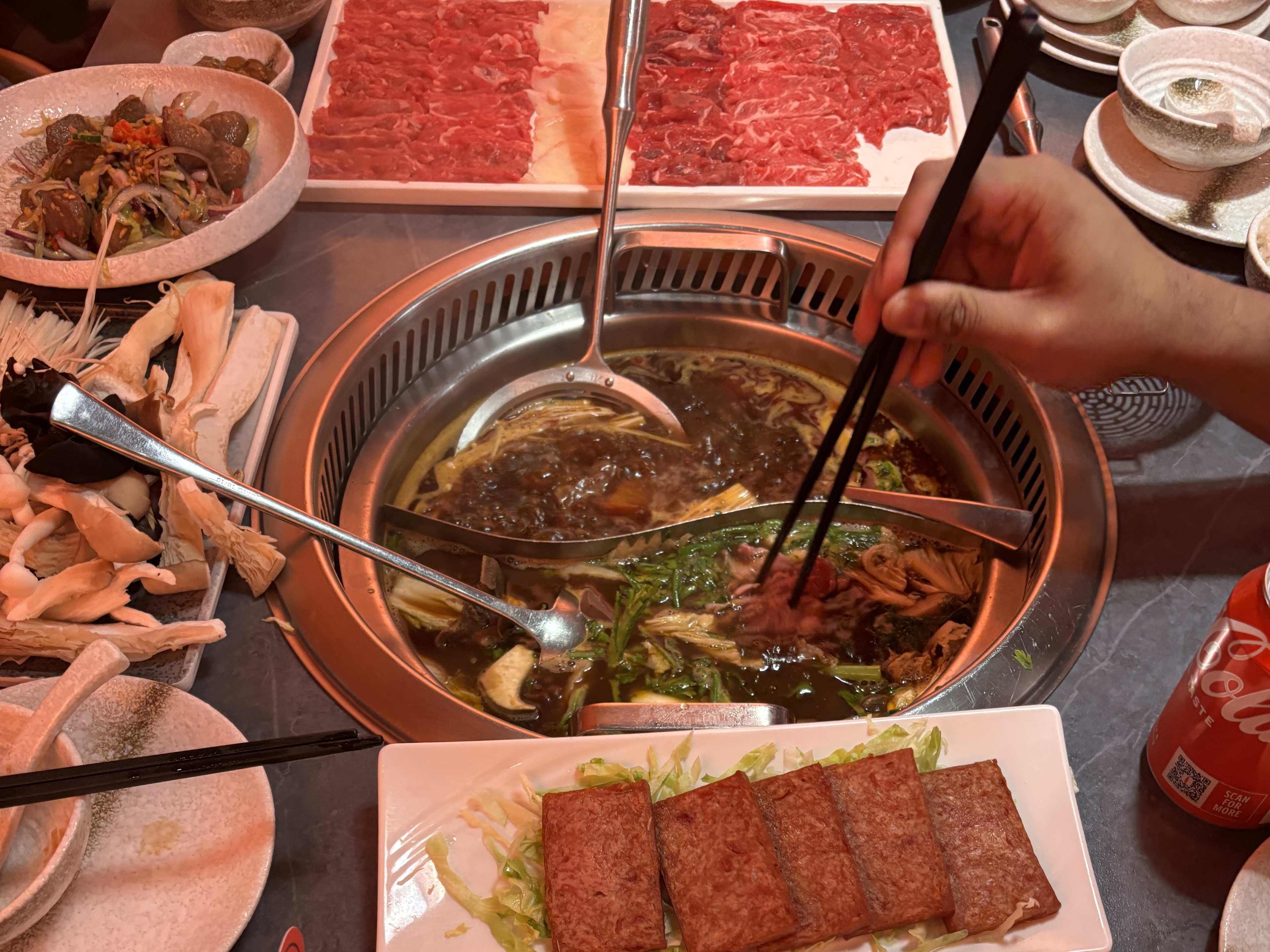 "From the team behind Murger Han (famous for chewy Xi’an-style hand-pulled noodles), Ning’s dives into the light flavours of Cantonese-Teochew-style hot pot. It’s a rare find in London’s hot pot scene, which is mostly dominated by fiery, mouth-numbing Sichuan broths. Aside from Teo HotPot and Niu Hot Pot, there aren’t many places in London flying the flag for this fragrant, delicate soup base. This Fitzrovia spot delivers an incredible, high-quality, luxe hot pot experience, highlighted by the beautifully marbled British grass-fed beef selection. Order one half spicy beef brine and the other Cantonese offal beef broth, both enriched with bone chunks that add a deep, rich flavour as they cook. Don’t miss the garlic-heavy chive flower sauce bar, which adds a punch of umami to everything. Crispy beef fat slices and handmade meatballs served on ice are also essential orders." - Angela Hui