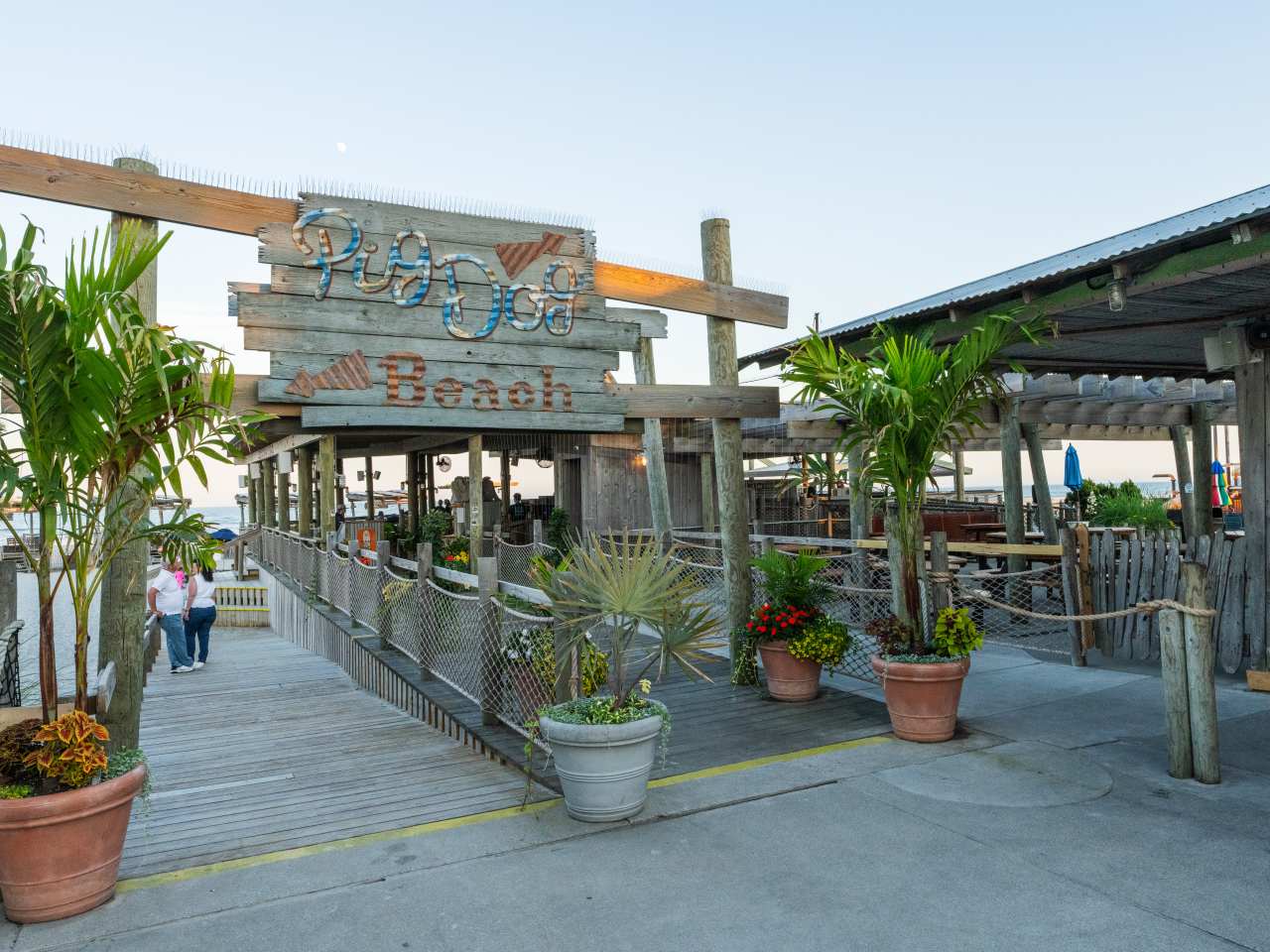 "If your usual beach lunch is a cooler full of sad PB&Js, head to PigDog for an upgrade. This casual restaurant and beach bar serves mostly barbecue, including pulled pork, beef brisket, and ribs, which come with little Hawaiian rolls if you still long to make your own sandwich. But you’ll also find vegetable quesadillas, salads, and other non-meat options, plus a “Little Pigs” menu for kids. Speaking of, it’s supremely family friendly—there are beach games like cornhole, and the entire ground is a sandbox—and dog friendly, and there’s live music daily. A full bar ensures you can start with the Mother of All Bloody Marys (or MOAB, served in a 32-ounce pitcher piled with a full appetizer sampler), move on to a frozen cocktail midday, and/or pair your dinner with a local MudHen beer on draft." - regan stephens, candis mclean, sydney mcelwee