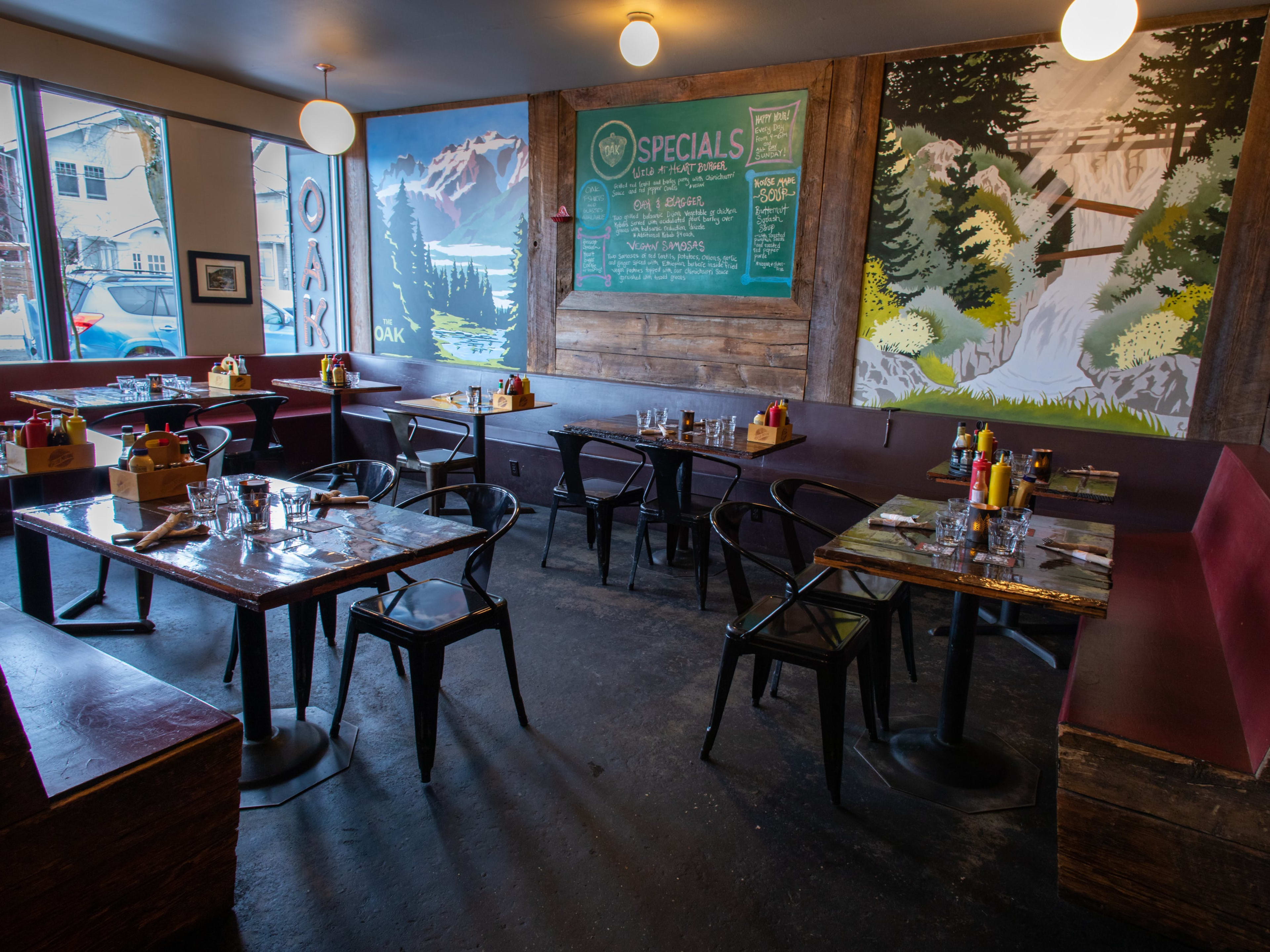 "Beacon Hill Station Adding to your burger-and-beer to-do list is Oak, an easygoing pub a short walk away from the Beacon Hill station. It kind of looks like a Pacific Northwest-themed hiking supply store, just without any Keen boots displays or shelves full of energy gels. The burgers are great, with vegan and gluten-free options and tons of toppings. They even have dairyless, meatless, and wheatless corn dogs. Alert your friends with dietary restrictions immediately, but maybe have them look away as you eat/go nuts over the excellent fried chicken sandwich." - aimee rizzo