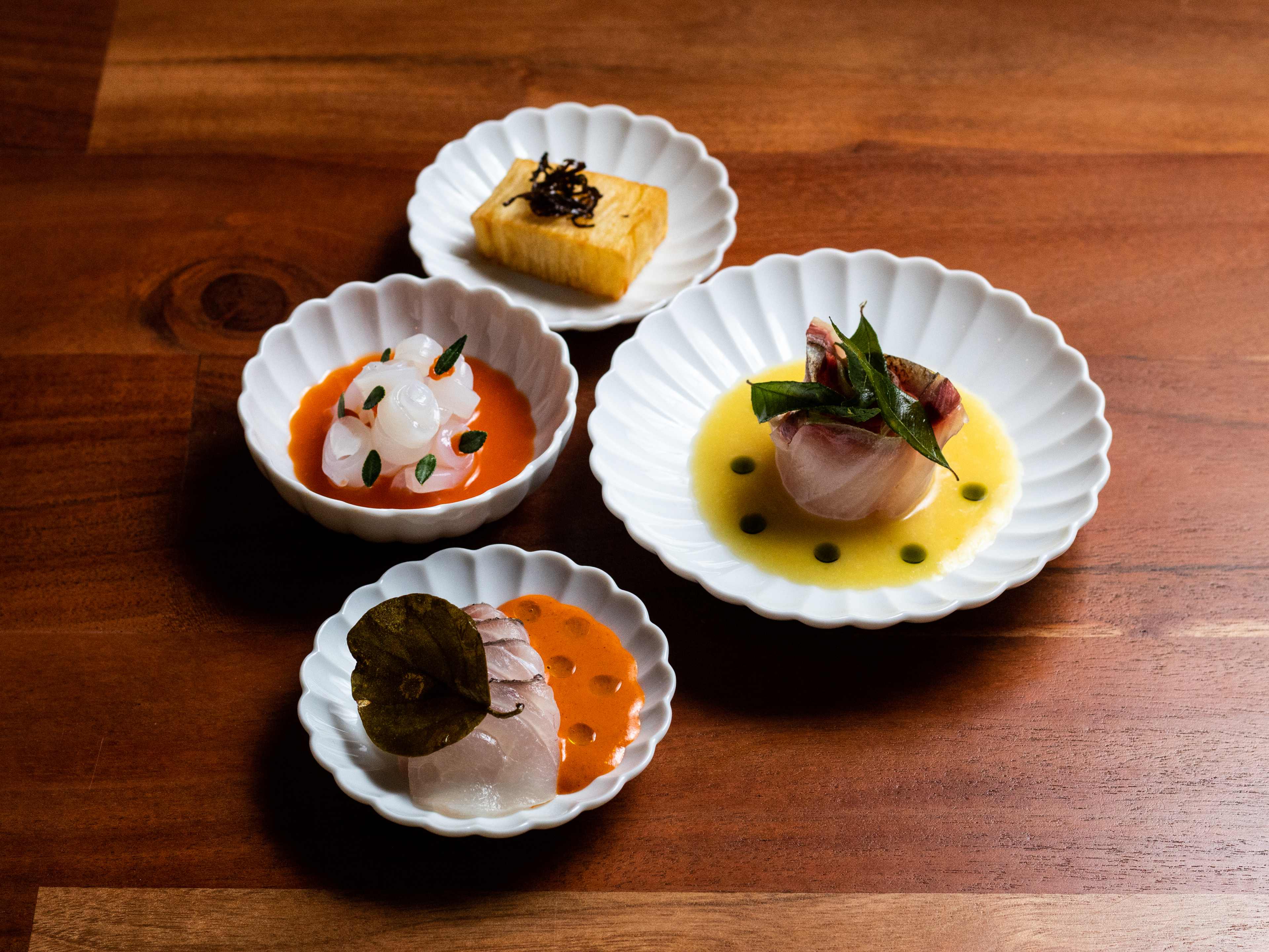 "Miami has plenty of tasting menus and omakase options, or whatever it is you want to call a dozen-ish seasonal courses hand-delivered by a chef standing behind a smooth counter. But Itamae AO is unlike any of them. When a chef at this Nikkei restaurant in Midtown slides a bowl towards you and describes what’s in it, your brain won’t know what to do with the words. “Hokkaido scallops cured in kombu, fried apple banana, ají charapita salt, and osetra caviar,” they calmly state, as if that's not the first time these sounds have been uttered in human history. Just as you're processing all these new, excellent sensations, they'll introduce a smoked Jimmy Nardello leche de tigre with Japanese sea bass and a fried caper leaf. Just give up on trying to follow along, and embrace the joy of uncharted territory. photo credit: Cleveland Jennings / @eatthecanvasllc photo credit: Cleveland Jennings / @eatthecanvasllc photo credit: Cleveland Jennings / @eatthecanvasllc photo credit: Cleveland Jennings / @eatthecanvasllc The sea creatures that make up most of dinner—kanpachi, swordfish, razor clams—are served raw, fried, dry-aged, or maybe minced and steamed into a delicate frisbee. They lounge in leche de tigre you’ll want to bring home and use as paint swatches. These are not agreeable, patient flavors that sit on your tongue and wait for you to notice them. They instantly make you pucker and sweat, and might inspire momentary confusion followed by intense delight. $165 gets you eight courses of that feeling, plus dessert. Itamae AO’s eight-seat counter is connected to its sister restaurant, Maty’s, another Peruvian spot making food that defies categorization. The two concepts are run by siblings, and though they share an air conditioning unit, they have personalities as distinct as the childhood rooms of an actual brother and sister. Maty’s is all clanking silverware, splattered sauce, and loud conversations. Itamae AO is meticulously clean and sparsely decorated. The two main visuals in the room are dry-aging lockers where humongous fish stare back at you, and the covers of hip-hop albums that play throughout the two-hour meal. photo credit: Cleveland Jennings / @eatthecanvasllc video credit: Ryan Pfeffer photo credit: Cleveland Jennings / @eatthecanvasllc photo credit: Cleveland Jennings / @eatthecanvasllc video credit: Ryan Pfeffer We’ve only come close to experiencing food like this at the previous version of Itamae, a Design District restaurant that set Miami’s standard of ceviche unrealistically high. And the reasons to visit this version of Itamae are mostly the same: because there are no alternatives. No one else makes food like this. Not even close. Food Rundown photo credit: Cleveland Jennings / @eatthecanvasllc Tasting Menu Most of the eight courses look something like this: a delicate piece of seafood is accentuated by a sauce or leche de tigre that consists of several words you didn’t see coming. The highlights of the meal remind us of the kind of tiraditos we used to find at the old Itamae, which can be spicy, tart, and sweet all at once. But we’ve also had fried slabs of hamachi, soba noodles with spiny lobster tartare and uni, and a bowl of warm, soupy short grain rice mixed up with chunks of cold ceviche. The menu changes a lot—our two meals here were completely different—but both occasions lasted about two hours and left us pleasantly full. photo credit: Cleveland Jennings / @eatthecanvasllc Sashimi Course Normally course two or three, this is when the meal really hits its stride and delivers the kind of flavors we come to Itamae—and only Itamae—for. You get three separate bowls of beautiful fish, but the leche de tigre outshines everything. We’ve had bigfin reef squid in a fermented yuzu leche de tigre, kanpachi in a local jackfruit leche de tigre, and Japanese sea bass in a midnight black puddle of habanero ash leche de tigre. You’re provided a little block of yuca pavé to wipe it all up with. photo credit: Cleveland Jennings / @eatthecanvasllc Hotate The only dish that’s been perfectly preserved from the old Itamae is this nigiri, which consists of scallops cured in kombu, a squiggle of fried apple banana, ají charapita salt, and a camel’s hump of osetra caviar. It’s the sole nigiri to make an appearance throughout dinner, and that’s understandable. No poor piece of sushi should be forced to follow this. photo credit: Cleveland Jennings / @eatthecanvasllc Dessert After all those punchy, acidic flavors, dessert starts with a refreshing bowl of seasonal kakigōri. On our visits, that’s been followed by a block of lúcuma custard topped with miso caramel and candied shiitake mushroom, which tastes slightly autumnal, like a pumpkin pie from another dimension." - Ryan Pfeffer