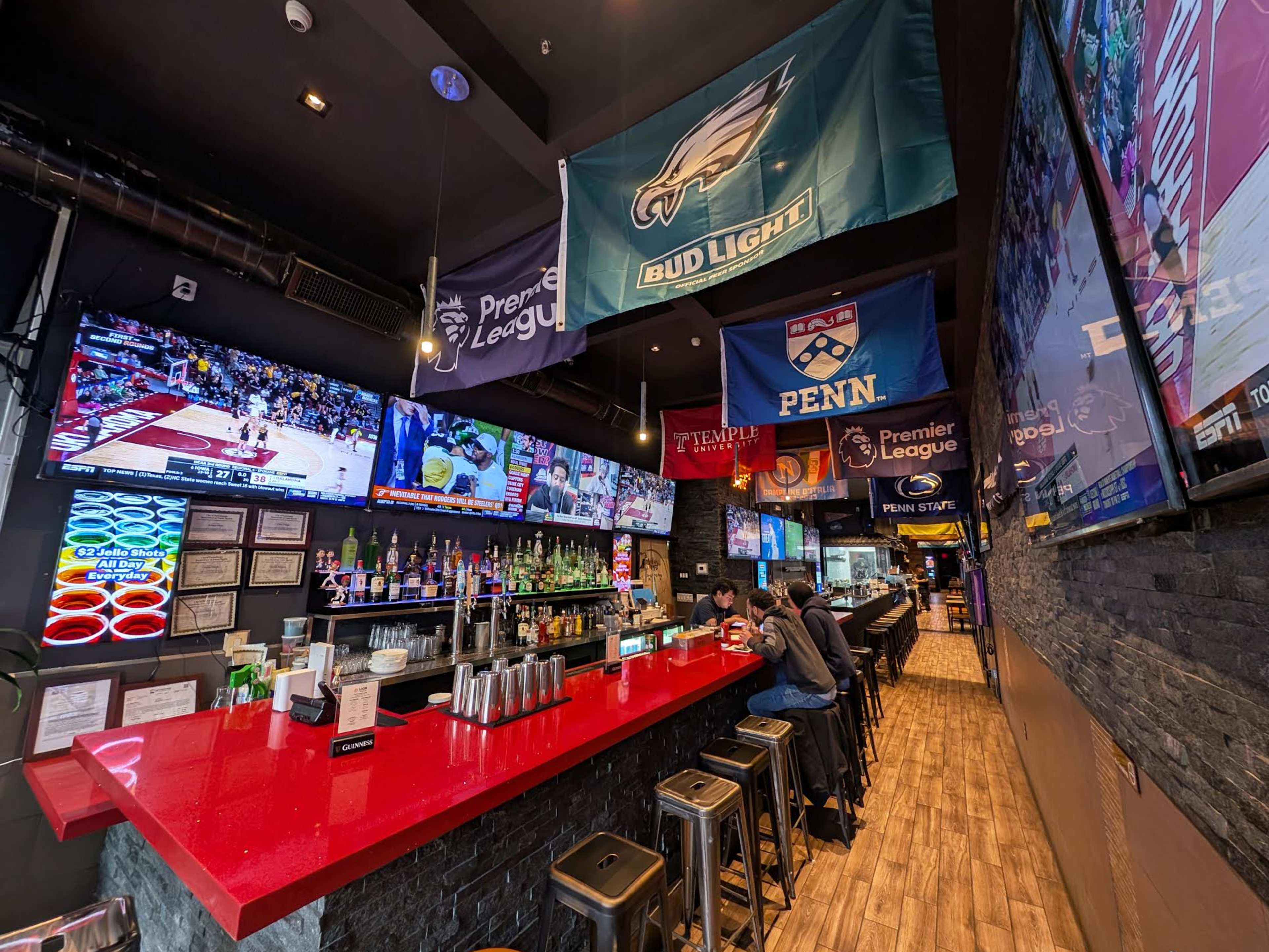 "Sports bars come in all shapes and (TV) sizes. Take Lion Sports Bar in Chinatown, for example—it opens at 7am on the weekends, offers free karaoke at 9 pm, and has a large Chinese-inspired food menu to boot. There are around 35 screens, but what Bryce Harper does on them shouldn’t have all your attention. Save that for the golf ball-sized pork soup dumplings, $1.50 smoky shrimp skewers during happy hour, and groups doing Pop Rocks Jell-O shots every time the Phils score a run. Come in and cheer for your favorite team or your friend’s Chappell Roan imitation. Whichever comes first." - candis mclean