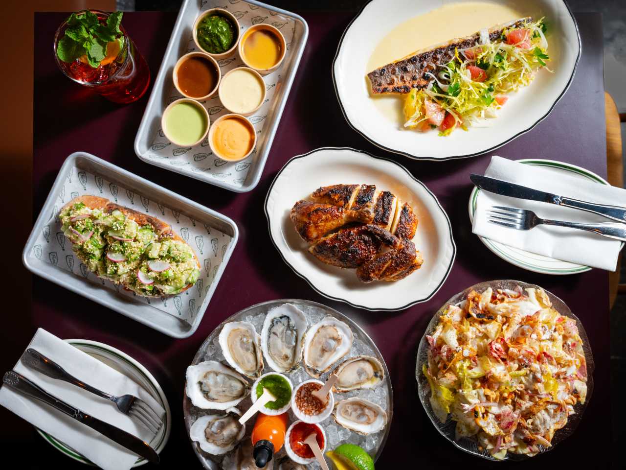 "You could probably fit a reunion of every romantic hopeful from The Bachelor inside this massive Kensington restaurant. Picnic comes from the team behind Beddia and Kalaya, so oversized dining spaces aren’t exactly new to them. But this one also includes a full wine shop up front, communal tables for large groups, and a lengthy bar in the back. But it’s not just its size that makes it great for a casual date, a last-minute group dinner, or lunch after a Little League game—it’s the dependable, built-to-share seasonal menu, which includes one of Philly’s best rotisserie chickens. photo credit: Nicole Guglielmo photo credit: NICOLE GUGLIELMO photo credit: NICOLE GUGLIELMO photo credit: NICOLE GUGLIELMO photo credit: NICOLE GUGLIELMO Pause Unmute Low lighting and plants make this renovated industrial space feel warm and energetic, as do the friends sharing inside jokes over banana negronis and plates of the perfectly smoky bluefish toast. Grilled cabbage salads and oyster platters crowd the tables of eight-plus, and they should—Picnic’s raw bar is consistently one of the best on this side of the El train. There are misses, too—we had a scallop crudo tossed in an XO sauce that was more slick peppery oil than flavorful, and the Italian sausage with raclette is a messier version of what you’d find at Citizens Bank Park. But the caliber of the ingredients and extensive menu makes Picnic one of the most reliable restaurants in the neighborhood, whether you head there for a laidback cheese plate and glass of wine or a boozy afternoon with 10 of your closest friends. Get a group together and confidently go for the standouts—not least the excellent chicken that’s worth your final rose. Food Rundown Banana Negroni It sounds like the first cocktail you order when you get to your beachfront resort. But this drink has way more depth than any island drink you’ve had before. It’s a well-mixed rum negroni, so there’s the classic herby bitterness, while the banana liquor gives it a smooth sweetness. It’s our go-to here. photo credit: NICOLE GUGLIELMO Oysters You can’t miss the raw bar out front when you walk in. Options change, but the quality is always excellent. They’re served with a mignonette, smoky hot sauce, and tangy verde sauce sidekicks. Get a dozen. photo credit: NICOLE GUGLIELMO Chicory Salad In walks this colorful, chopped chicory salad that balances the natural bitterness of the leafy green with hazelnut, date, and a slightly rich crème fraîche. It is good. But it also has the flavor profile of every chicory salad served in every Contemporary American restaurant, so it’s not essential unless you’re in the mood for a salad. photo credit: Nicole Guglielmo Bluefish Toast Briny, smoky bluefish, zaatar cucumbers, and toasty sesame are beautifully draped over toast points. We would happily eat this three times a week. photo credit: NICOLE GUGLIELMO Grilled Branzino A nicely charred slab of grilled branzino, citrus salad, and lemony beurre blanc. It’s fine, but it’s not knocking anybody’s socks off. photo credit: NICOLE GUGLIELMO Rotisserie Chicken Picnic’s pièce de résistance. And that’s why it’s the never-changing core of this rotating menu. The skin is so beautifully charred that they could make a side dish out of that alone. But then you’d miss out on the tender, fall-off-the-bone meat. Dip the chicken, which comes as a half or whole, into the classic hollandaise, anchovy salsa verde, roasted garlic chicken jus, or any of the other sauces. But the beauty of this bird is that it doesn’t need anything extra. Just you, your greedy fingers, and a little privacy. photo credit: NICOLE GUGLIELMO Yogurt Who knew frozen yogurt could be this thick and flavorful? The silky froyo comes topped with fresh fruit and a crunch—we’ve had apple, tamarind, and pie crust crumble. A cup is supposedly made for two, but we didn’t get that memo when we hoarded it for ourselves. Not sorry. photo credit: NICOLE GUGLIELMO" - Candis R. McLean