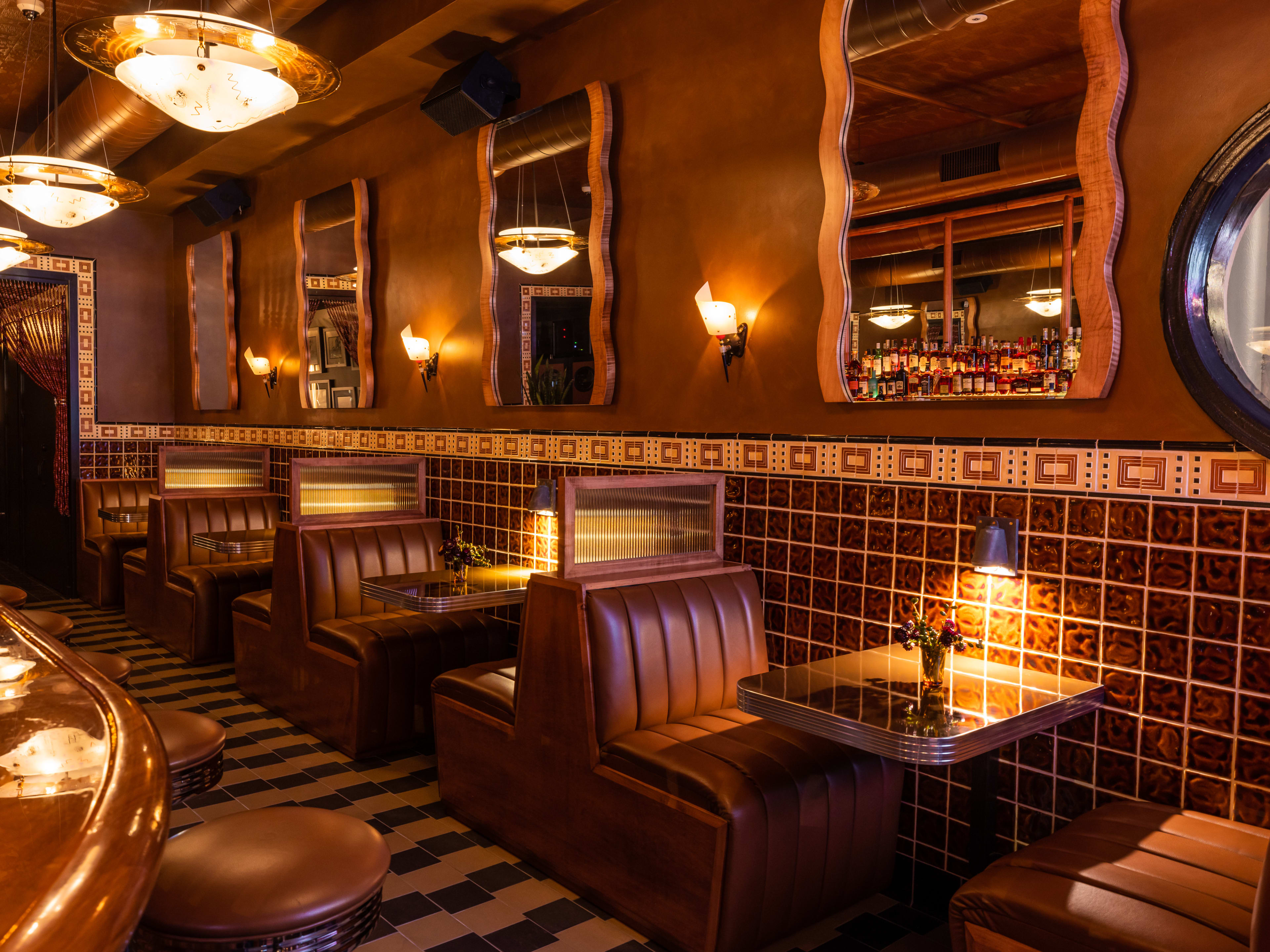 "This is a laid-back neighborhood bar on the Sunset Strip. Yes, you read that correctly. Bar Next Door looks straight out of a 1970s crime drama, with diner-style booths, fluorescent lights, and a wraparound bar where you could picture Lt. Columbo smoking a cigar. There's always a good mix of coworkers rolling up their sleeves over cocktails and solo drinkers making chit-chat, adding a buzz to the small space that never gets too hectic. The cocktails are fantastic, too, even if they have cheesy LA-themed names. The Olive Drive tastes like a sweet, floral vesper, and the Viper Room is a pisco sour kicked up with serrano chile heat and tart passion fruit. " - nikko duren, brant cox, sylvio martins