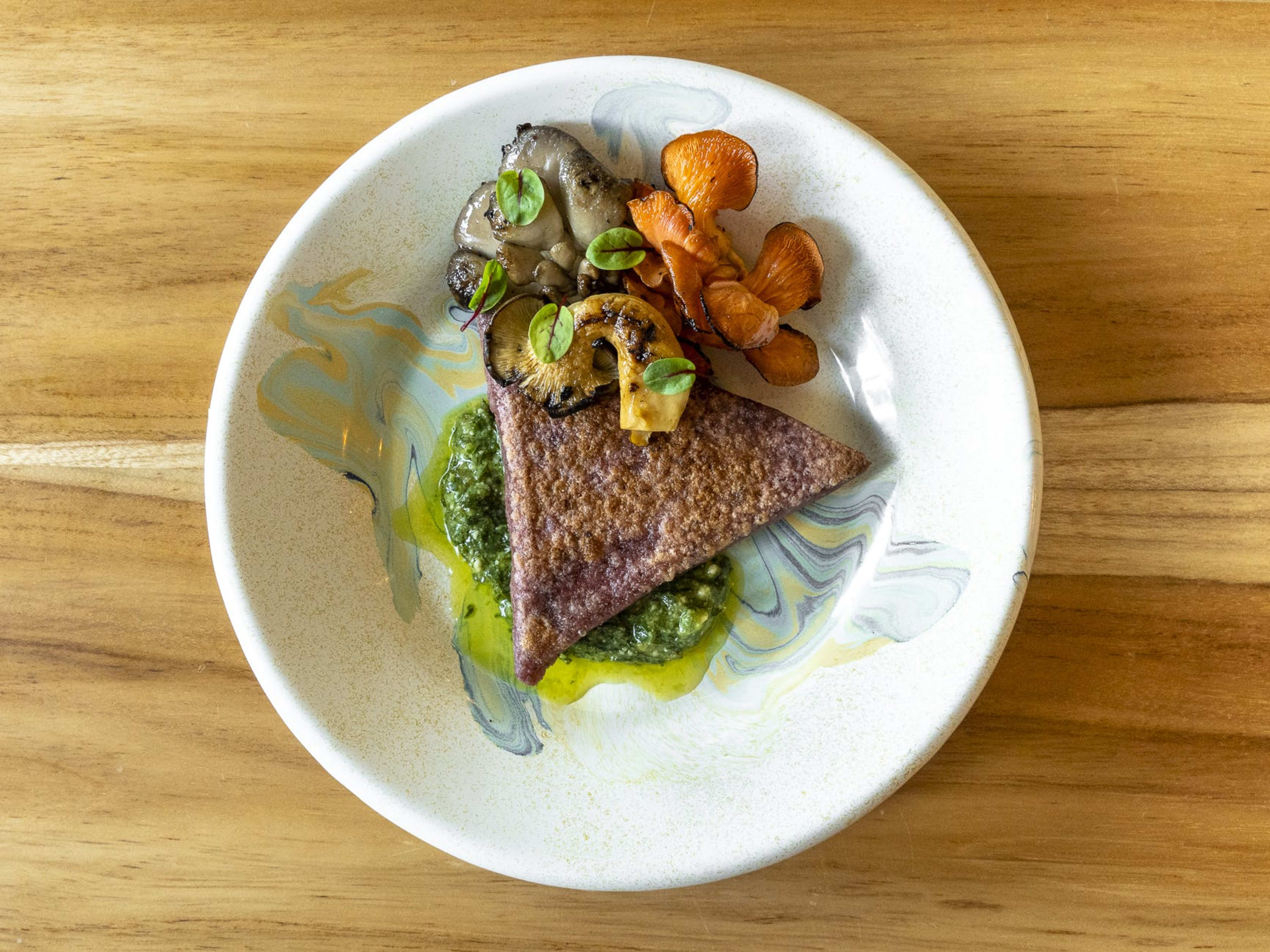 "To get to the icy mango bits in this mango granita dessert, you have to smack the hibiscus meringue disc with the back of your spoon. It’s the kind of violent fun that makes people book an hour session in a rage room—but better—because you can eat what you’ve destroyed. The mango granita is mixed with lime zest and coconut foam. The entire thing is a tropical, refreshing whirlpool of texture and temperature. Get access to exclusive reservations at this spot with Chase Sapphire Reserve. New cardmembers get $300 in annual dining statement credits." - ryan pfeffer, virginia otazo, mariana trabanino
