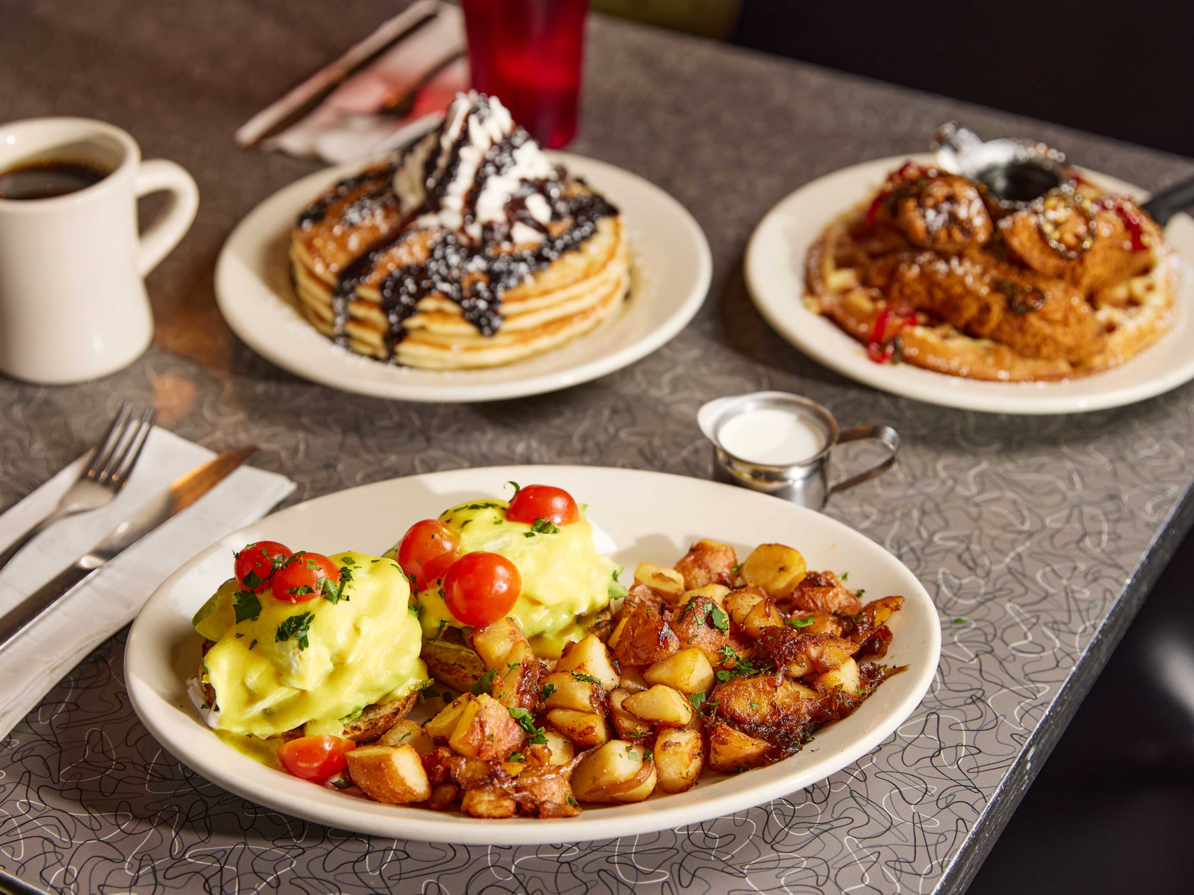 "The menu at Veggie Galaxy is made up of excellent comfort food that just happens to be mostly vegan, like biscuits and gravy, corned “beef” hash, and chocolate frappes. The plush booths, formica tables, and the glass display case full of glossy vegan cakes might look retro, but the menu is full of savvy plant-based substitutions. The Comet, with seitan sausage and citrusy mashed avocado, is one of the best egg sandwiches in town, and your friends just might write you into their wills for ordering the pancakes (which can be made gluten free) for the table. Brunch is served daily here, so no need to wait for the weekend to get your fix." - lala thaddeus, tanya edwards, catherine smart