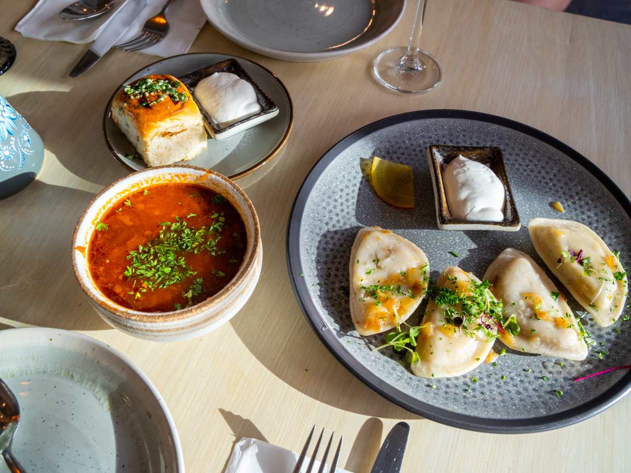 "You probably won’t be able to hear yourself speak over the din of Ukrainian families, groups of friends, and semi-blaring pop-music at Ruta, but you don’t come here to chat. You come here to eat some of the best potato and sauerkraut-stuffed varenyky in the capital (which makes sense—Ruta was started by one of the chefs from New York’s legendary Veselka). A wall of gold mirrors and paintings of saints look down over the closely packed tables crowded with bottles of Ukrainian beer, plates of honey cake, bowls of borscht, and the best chicken kiev we’ve ever had." - Madeline Weinfield