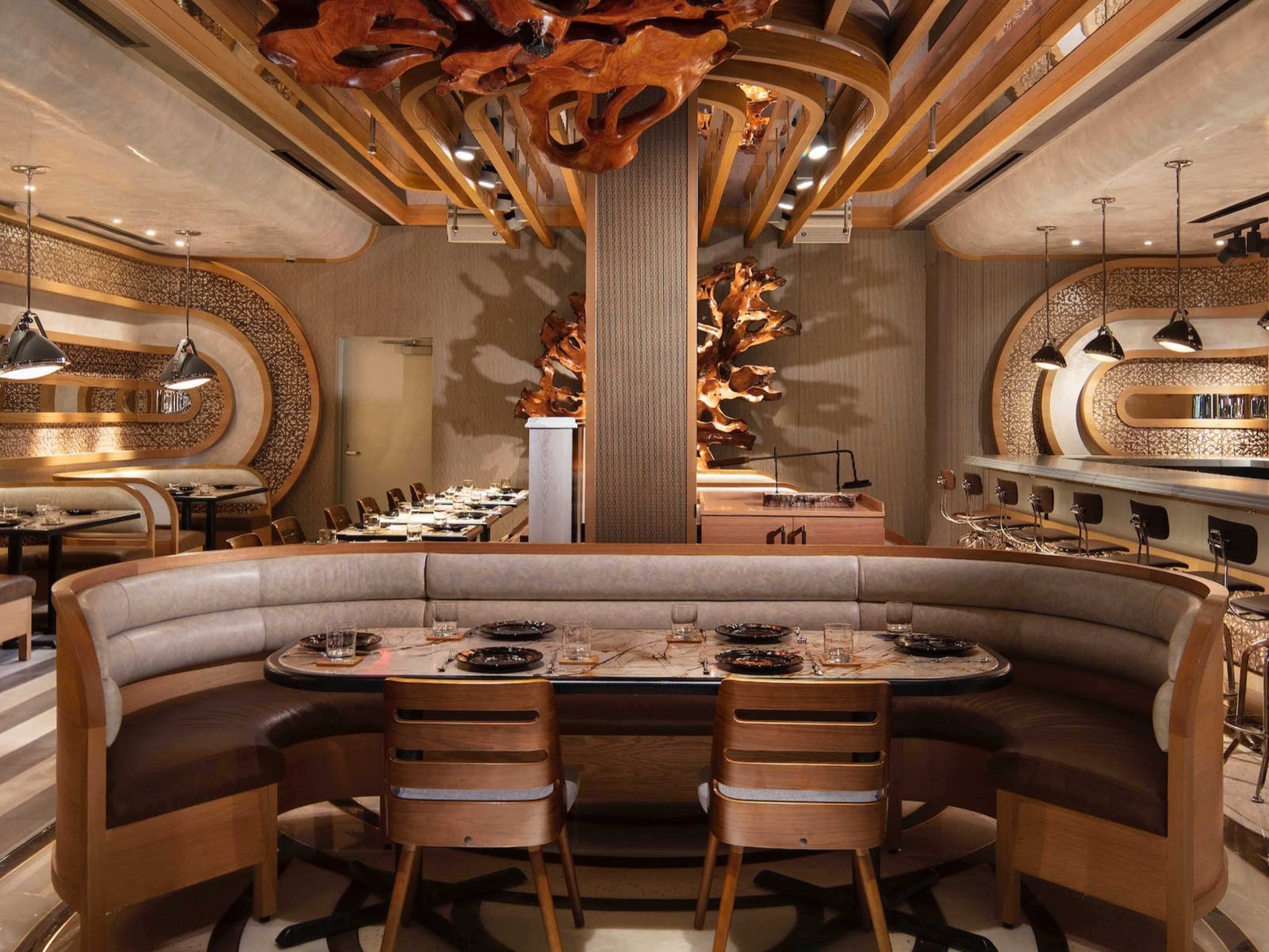 "Certain creative endeavors could benefit from having someone in the room who is willing to say no - like every DJ Khaled album ever. “Sir, maybe you only have to scream your name once per song,” is a sentence our ears wish happened at some point. Instead, we can’t turn on our car radio without feeling like Mr. Khaled has burst through our rear windshield like the Kool-Aid Man. Ember could have used a voice like that too - someone to say no to designing a restaurant that looks like the bachelor pad of a Las Vegas Keebler elf, or fire-roasting lasagna just because it sounds cool. But this place feels like the result of a brainstorming session where every idea was given a big fat yes. And what we have now is a restaurant where nothing really makes any sense. photo credit: Mike Butler The first thing you notice when you walk into this Design District spot is everything, all at once - like being woken up by a 300-person marching band. There’s no room to focus on the details because everything is screaming for your attention at the same time: the wooden curves that line the mirrored ceiling, the wavy brown and white stripes on the floor that make you dizzy if you stare at them too long, and the giant sculpture in the middle of the dining room that looks like the Stranger Things monster if it was made out of repurposed driftwood. The surfboard-sized menu is also a bit overwhelming. Ember calls itself a “wood-fired American bistro” and serves random things like savory beignets, roasted cornbread custard, lasagna, fried chicken, and a handful of steaks ranging from $49 to $125. We’re totally cool with a menu that takes some Shyamalan-esque twists, and if Ember’s food was undeniably great, then maybe we could even forgive some of the sensory overload. But it’s just not. photo credit: Mike Butler Those NOLA beignets are overwhelmingly cheesy and after two bites, it just tastes like you’re taking shots of warm pimento cheese. The steak burger is better without its bun, which is denser than styrofoam and almost tastes stale. The fire-roasted lasagna needs to borrow some cheese from the beignets and is nowhere near as exciting as it sounds on the menu. And other dishes come to the table room temperature at best, which isn’t what you want with Oysters Rockefeller or roasted cornbread that’s supposed to be custardy in the middle. It’s not all bad here. The smoked fried chicken is awesome - it’s super crunchy and comes with Haitian-style spicy pikliz. And if you’re a dessert person, the Maduro cream pie is fantastic and topped with a charred meringue that’s taller than the pie itself. But as good as those two things are, it’s not enough to really make us want to come back here - just like how even a few good verses can’t make up for four minutes of DJ Khaled screaming nonsense into our ears. Food Rundown NOLA Beignet Some things sound better than they taste and this is a perfect example. A savory beignet with pimento cheese and hot sauce should be delicious. But here, it just tastes like a mediocre Hot Pocket doing a bad beignet impression. Fire-Roasted Lasagna We are all for unusual takes on classic dishes, but no matter how you prepare it, lasagna needs to be a bear hug of pasta, cheese, and sauce. We could barely taste all of the above in this dish, which has an upsetting lack of cheese between its layers and a maitake bolognese that’s about as exciting as ketchup. Oysters Rockefeller These are brought to the table in a cigar box (cute), but are served barely above room temperature (not so cute). Even if they were nice and hot, there’s so much spinach and hollandaise that you can’t even tell you’re eating an oyster. Roasted Cornbread Custard You’re told to mix up this cornbread custard (which is not a custard, but a fully-baked disc of cornbread). But even after we stabbed and scraped together the greens, beef ragout, and bone marrow butter on top - it didn’t taste any better. Plus, there aren’t any of those nice, crispy edges we love and expect from skillet cornbread. Smoked Fried Chicken This is probably the only dish here we would like to eat again. The fried chicken is super crispy and juicy inside and comes with some spicy pikliz that have a nice kick. Black Angus Filet The filet itself is cooked perfectly, but it’s kind of floppy and lacks a good sear. You will forget about this steak the same way you meet a person at a party and forget their name five seconds later. Steak Burger Expect this is to be one of those messy burgers where the cheese and toppings ooze out and onto your entire body if you’re not careful. But the main reason we’d never order this again is the dense, hard bun. Maduro Cream Pie You know those desserts that are so good you will eat them even when every rational part of your brain tells you that you’re about three seconds from actually exploding? This is that kind of dessert. Sit at the bar for a slice of this after trying on everything in the Gucci store down the street." - Ryan Pfeffer
