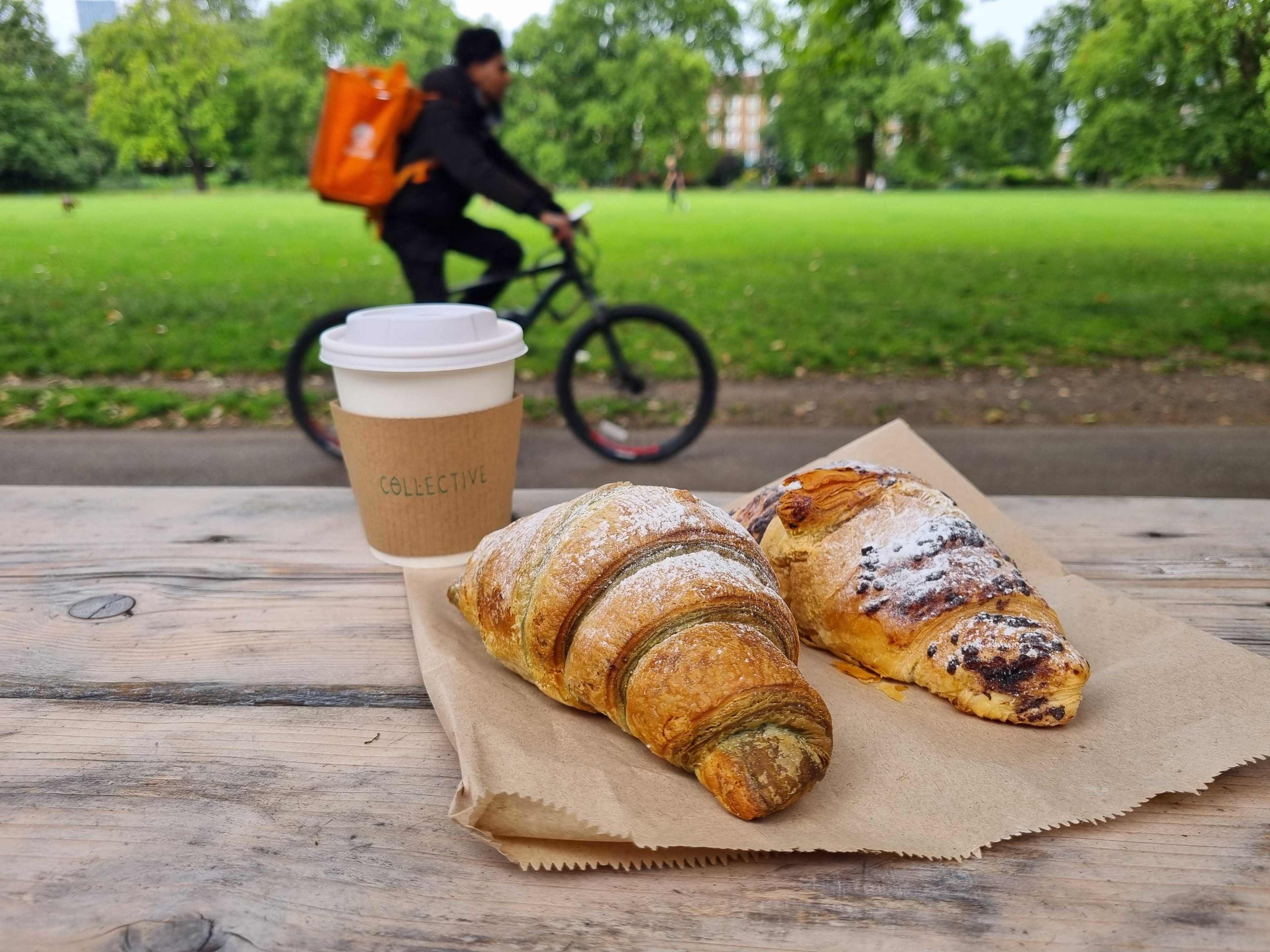 "Every morning at this Kennington Park cafe feels like the weekend. There's something about the white picket fence that surrounds Collective—and the fact that it suddenly comes into view, beyond fluffy trees, like a fairy tale cottage—that just melts stress. We like to sit outside, by the thick wooden counter that looks out over the park. Because watching this many dogs tumble about while drinking a good-quality hot chocolate is a dopamine hit we usually don't get until Saturday. The pastries are pretty decent, but really they're an accessory to your wholesome morning and the feel-good scene, rather than the main reason to go here. photo credit: Sinéad Cranna photo credit: Sinéad Cranna photo credit: Sinéad Cranna Pause Unmute" - Sinéad Cranna