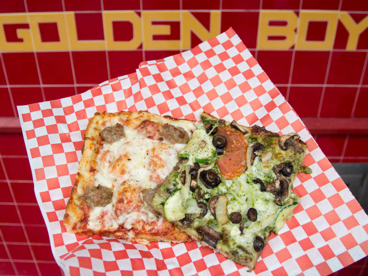 "Next time you find a $10 bill in an old pair of jeans and want to spend it on something worthwhile, order from Golden Boy Pizza. The prodigal son of North Beach has excellent signature Sicilian-style slices that are part doughy focaccia and part gooey cheese topped pepperoni, sausage, and clam and garlic sauce. These are some of the best pies in town, and at $4-ish a slice, it’s also one of the best deals in the city." - Julia Chen 1, Lani Conway, Kat Hong