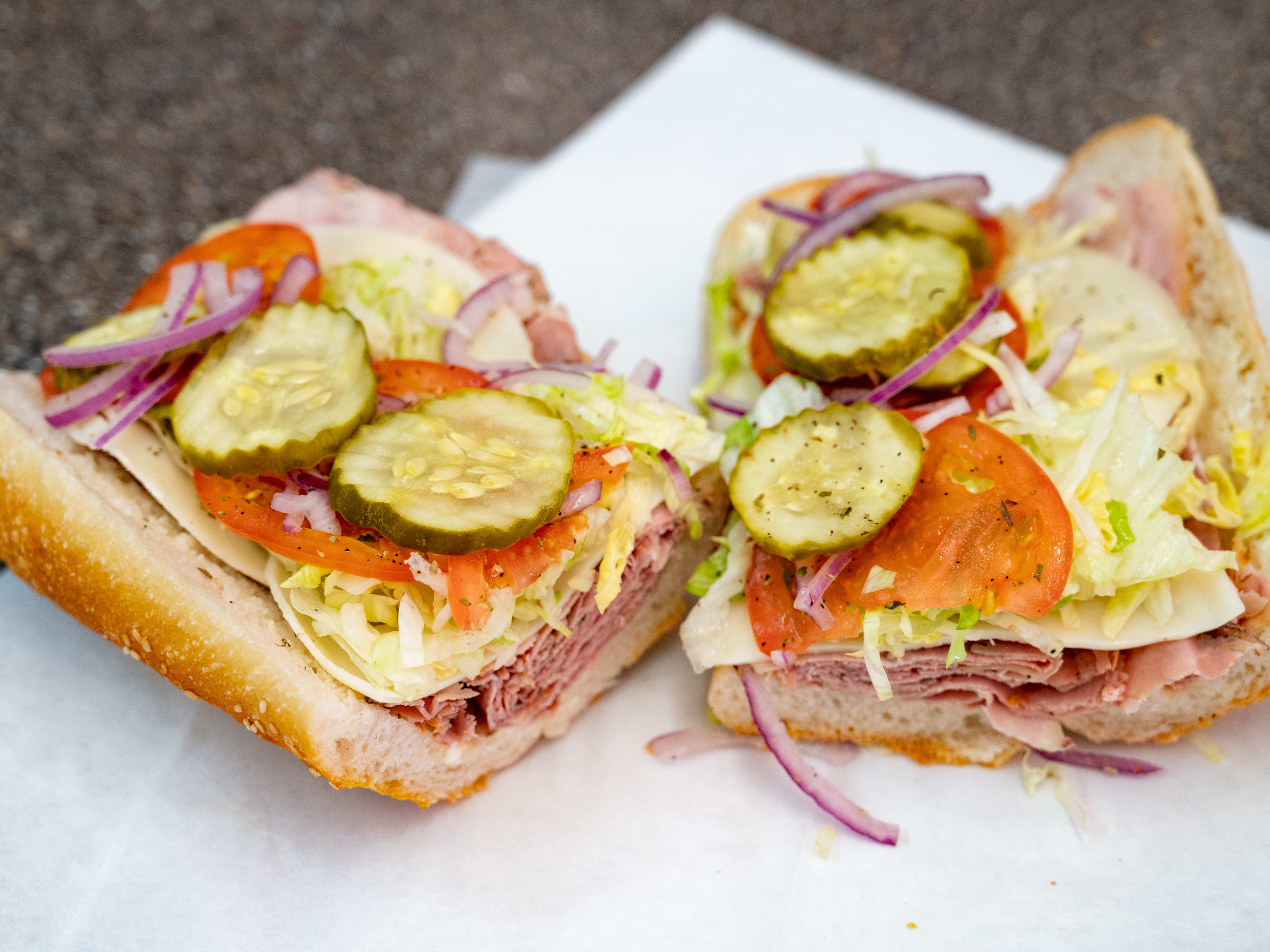"Hoagies at this Rhawnhurst deli are oversized—it’s like someone fed them the “Eat Me” cake from Alice in Wonderland. Hoagies can come in 12 inches or you can pay $0.25 for an extra foot, and they’re all excellent. This is why if you've stopped by during lunch hour, it may get as crowded as 2 Street on New Year's Day. The traditional Italian is the way to go here. The roll is soft yet has a beautifully crispy exterior, and each bite is overflowing with piles of thinly-sliced meat and cheese. Just be sure to save room for a bag of chips near the checkout line, because who’s eating a hoagie without them?" - alison kessler, candis mclean