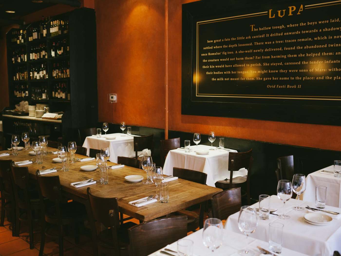 "Lupa is a snoozy Italian restaurant in Greenwich Village, and that’s not necessarily a bad thing. Inside, children-of-divorce share rigatoni alla gricia with their slightly-absent father, and a couple who has come here every week since 1999—when this place first opened, and experienced the type of buzz that comes with being new and associated with an even buzzier spot (Babbo)—quietly enjoys their usual. In a city full of excellent Italian spots, a boring one, where everything on the menu tastes like a slightly less-good version of something you’ve had somewhere else is never going to be the best choice. But maybe you made the mistake of thinking you could walk into some place currently experiencing the kind of hype this place experienced several decades ago. In a pinch, you could do a lot worse than the totally serviceable Roman food at this dark, candlelit spot. Follow your neighbor’s lead and order a Grey Goose cosmopolitan, and get the tartufo for dessert. It’s a textbook version: predictable in a comforting way. Food Rundown Roasted Beets with Pistachio Pesto and Whipped Ricotta A take on the roasted beet and goat cheese dish that was hot several decades ago. Not terribly exciting, but a solid choice for beet enthusiasts. Pastas The pastas are all solid. Try the black spaghetti with seafood. Tartufo A textbook perfect take on an Italian restaurant classic. Pairs well with that third cosmopolitan." - Willa Moore