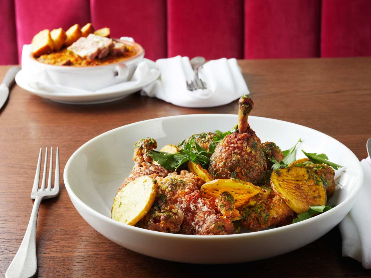 "Mamou is a great place to bring a date, eat steak tartare, and drink a glass of red from Burgundy. Beyond snails, we love the braised celery hearts with beef tongue, gulf fish a la royale, and risotto—basically anything that leans into the rich and butter-loaded dishes they do really well. If you’re around Louis Armstrong Park and need a glass of wine and a snack, hang out at the lively emerald green bar, which is just as fun as the rest of the fuschia-accented dining room." - megan braden perry, zella palmer