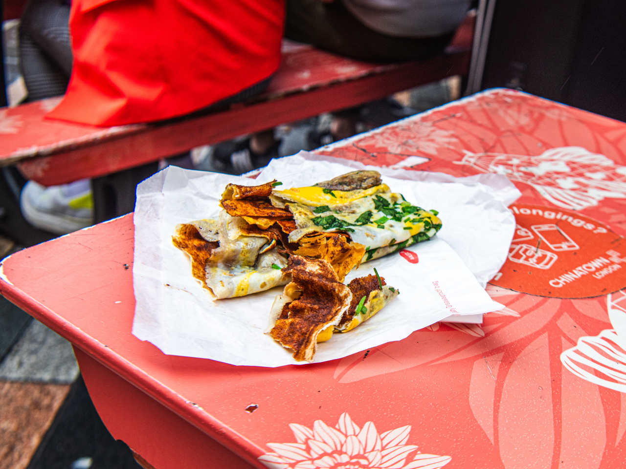 "Chinese Tapas House—a tiny takeaway spot in Chinatown making jianbing—is a rare example of street food done right in London. The savoury crêpe-like dishes start at around £4 but when you load them with marinated pork belly and enoki mushrooms, it’s more like a tenner. It’s worth it though. Spicy, meaty, crunchy, messy—it's a satisfying lunch, especially when standing outside, watching people in the Angus Steakhouse opposite." - jake missing, rianne shlebak