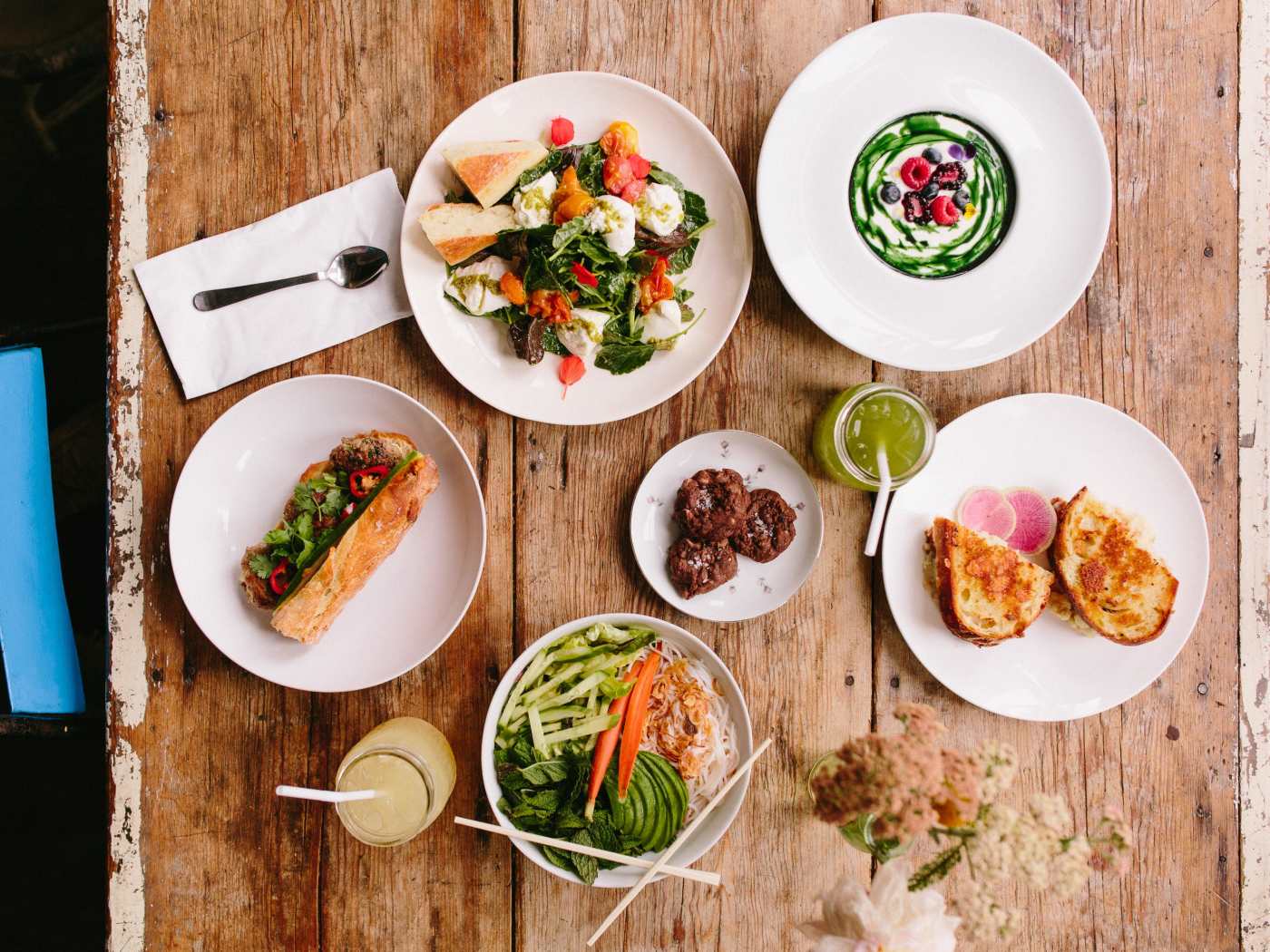 "Melrose Place should maybe consider a name change to Blogger’s Place. Every person with a laptop and 15,000 followers on Instagram is here every day. They’re gramming their ‘But First, Coffee’ cups at Alfred, posing for photos outside the ivy-covered buildings, and banging out a post on The 10 Best Ways To Wear Chokers This Summer. What Melrose Place didn’t have for a long time? Anything resembling decent food. We’re not 17-years-old and dining out on our parents’ credit cards, so Fig & Olive isn’t an option. Alfred stocks annoyingly named vegan, gluten-free sandwiches, and Sack Sandwiches (formally known as ink.sack) isn’t technically even on the street itself. But somewhat hidden away behind this short stretch of West Hollywood is Croft Alley: the very definition of a hidden gem. See those stairs next to Alfred? Take those, follow the hallway and then go down the stairs on the left, into a sunken indoor courtyard. Croft Alley is through a door that takes you into a tiny space, with a tinier kitchen. It all feels kind of like you’re eating in someone’s very stylish house. photo credit: Benji Dell Breakfast and lunch are what you’re here for (although we hear their catered dinners can be pretty spectacular), and the sandwiches are the stars. Most are spins on the classics, like the cauliflower grilled cheese, slightly spicy egg salad, and the simple but great turkey banh mi. On Wednesdays they whip up a big batch of pho that’s definitely worth making a trip for. There are healthy things too, if that’s your thing (you’re on Melrose Place, so it’s probably your thing). They make their own yogurt, and you can get your egg salad wrapped in lettuce when carbs are the enemy. You should make an exception for the triple chocolate cookies even if they are. While Croft Alley seems like it was designed with the perfectly filtered Instagram shot in mind, the food tastes as good as it looks, and there’s no attitude here at all. You might end up sitting next to a couple of food bloggers discussing how to best optimize their feed, but the staff will probably take pity on you and bring you a cookie to make up for it. Which is a pretty great way to describe Croft Alley - like a cookie that makes up for the rest of Melrose Place. Food Rundown Yogurt With Chlorophyll They make this yogurt in-house and once you’ve had it, Yoplait just ain’t going to cut it. Creamy and delicious, but still (probably) good for you. Turkey Sausage Banh Mi One of two sandwiches at Croft that we regularly think about. Not the overstuffed banh mi you normally encounter, it’s a simple baguette minimally filled with turkey sausage, cucumber, cilantro, chili and some magical mayo. Cauliflower Grilled Cheese The other sandwich we fantasize about, but only get when we’re feeling brave. So rich, so filling, so worth the 5-mile run you’ll need to do later. Vermicelli A salad for those who don’t do salad, there’s just the right amount of greens in here (ie. not that much), and way more vermicelli noodles, pickled carrots, and crispy shallots. The coconut dressing makes this thing. Buratta We never say no to buratta, and this guy is no exception. Ask for extra bread, you will need it for all those leftover juices." - Jess Basser Sanders