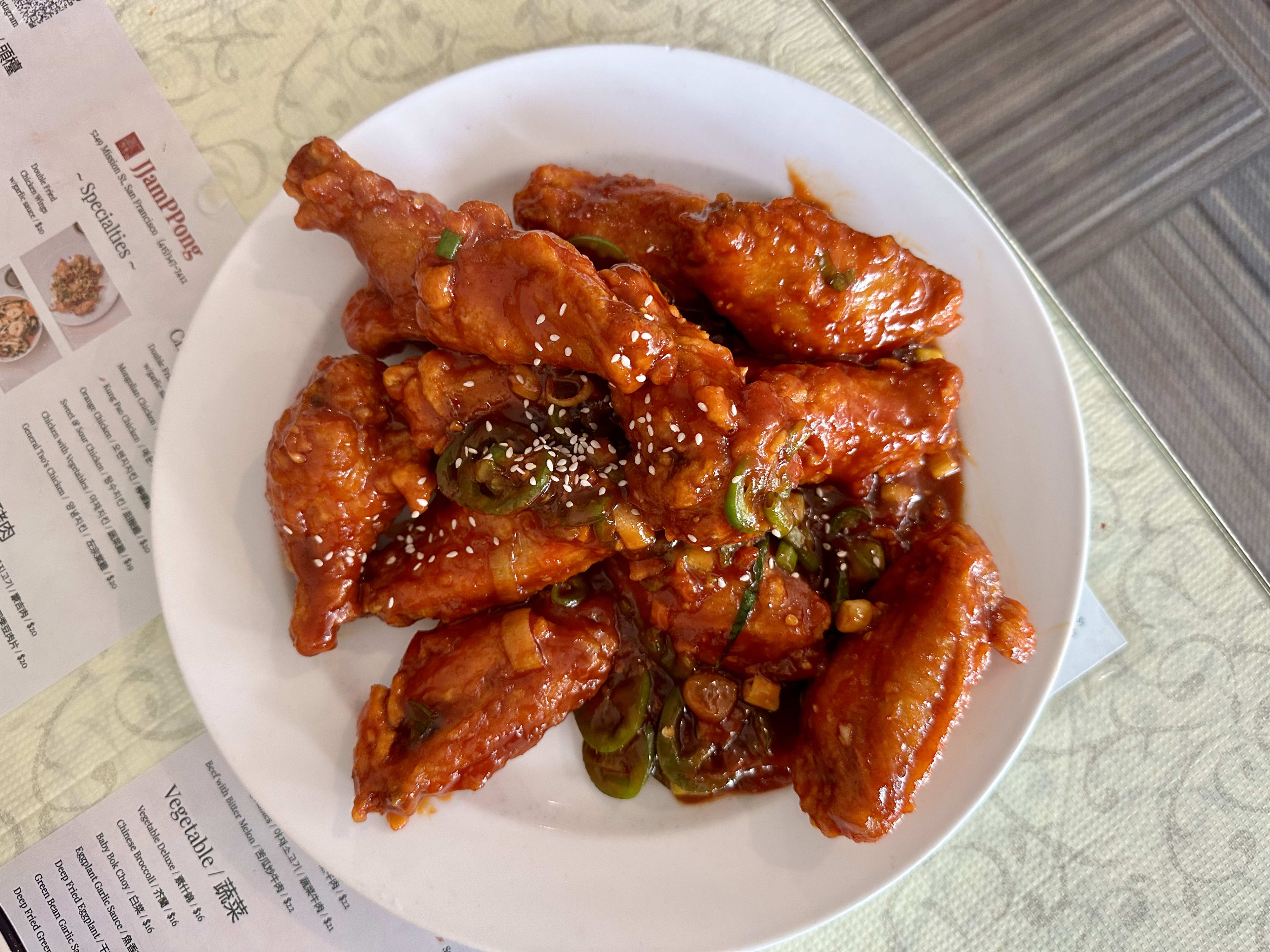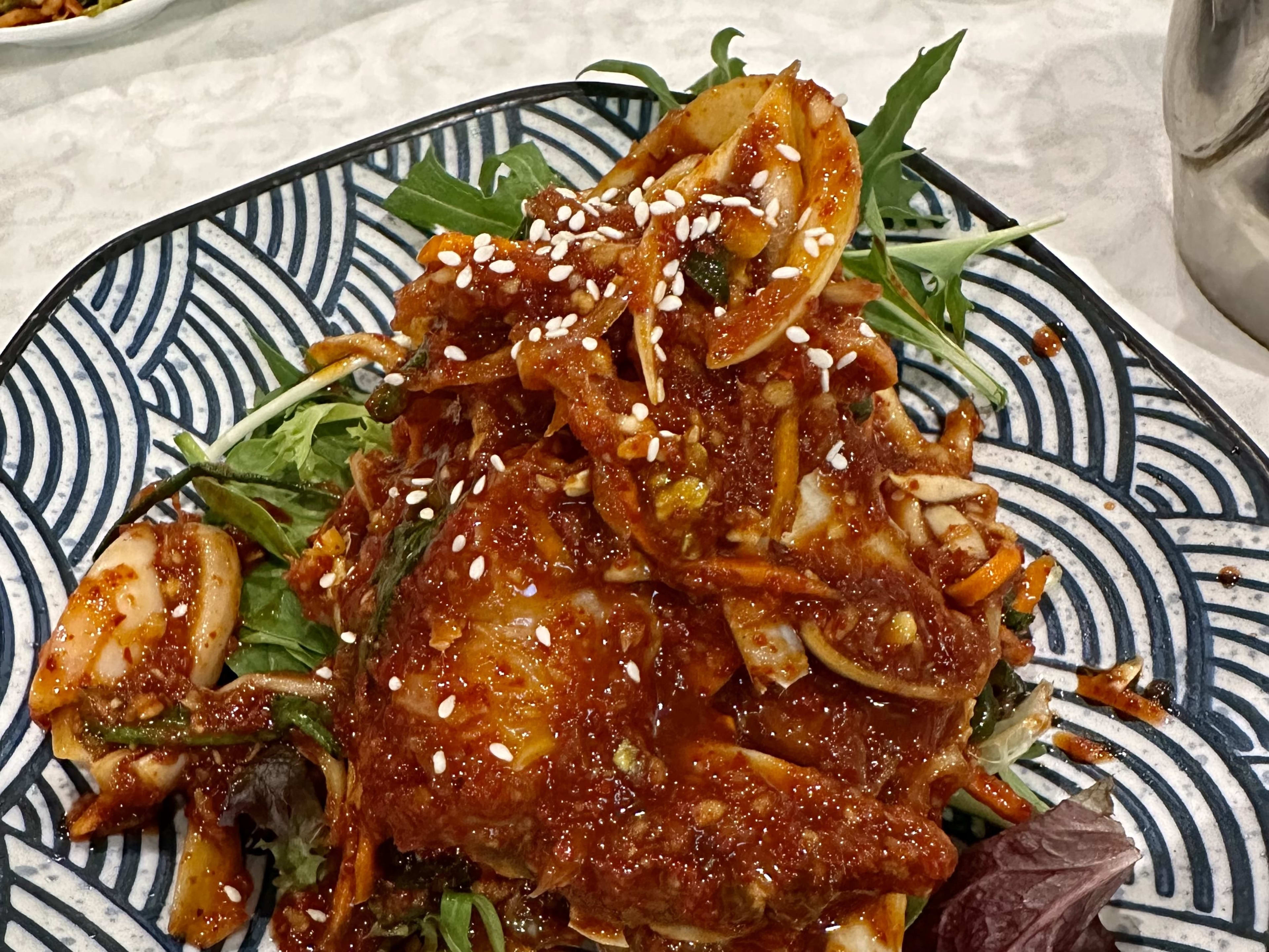 "You go to Jjamppong for the spicy raw crab: six small crab halves sitting underneath a gigantic mound of vegetables covered in chili sauce. Put on a plastic glove, squeeze out the translucent, gelatinous-looking meat onto the snacking seaweed and rice that goes with it—and prepare for red sauce to go flying. This dish is messy, fun, spicy and zippy all at once, and worth a trip to this always-crowded Korean Chinese spot in the Outer Mission. But don’t shy away from their other Korean specialties. There’s a fantastic seafood jjamppong, an onion-heavy jajangmyeon, and some of the plumpest double-fried chicken wings around. Even with a wait, this place is exactly what a notch-above-casual weeknight dinner should be." - Lani Conway