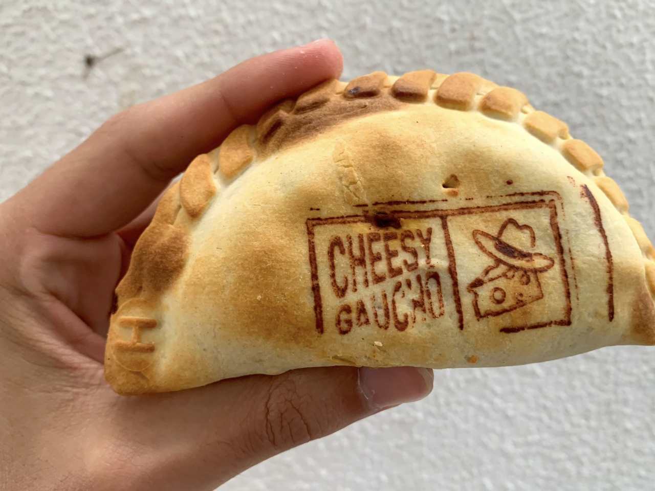 "Cheesy Gaucho Empanada Another place on 79th Street I pass by way too often: Half Moon Empanadas. They have a few locations scattered around Miami, but the 79th Street location is a casual walk-up window, where you can grab a six-pack of some really great empanadas to bring to the beach - or back home to your couch. I got a few (all delicious) but I really liked the cheesy gaucho, which has a list of fillings that requires a very deep breath to say out loud: ground beef, diced onion, red pepper, black beans, corn, bacon, mozzarella, asiago, provolone, and chimichurri." - ryan pfeffer, carlos c olaechea