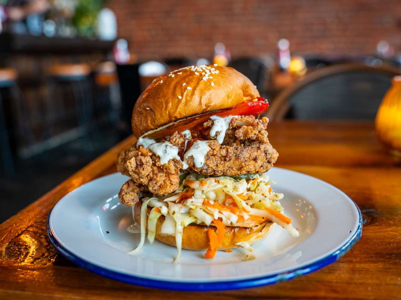 "Lucky Buns has three locations in the city, but the Adams Morgan one is our favorite—and not just because it’s one of the best spots to refuel after dodging bachelorette parties on 18th Street. This sit-down restaurant has a laid-back, communal vibe, and you can wrap up the night on the patio or at the bar. The burgers are good—sometimes great, depending on what you get (we love the creative, multi-topping options like the El Jefe, which has gouda, cotija crema, and green chili relish). But our favorite thing to order is a chicken sandwich. Specifically, the Mumbo Bun: a fried chicken thigh in a spicy Thai chili mumbo sauce, with dill pickles and a saucy ranch mayonnaise. photo credit: Nina Palazzolo" - Omnia Saed