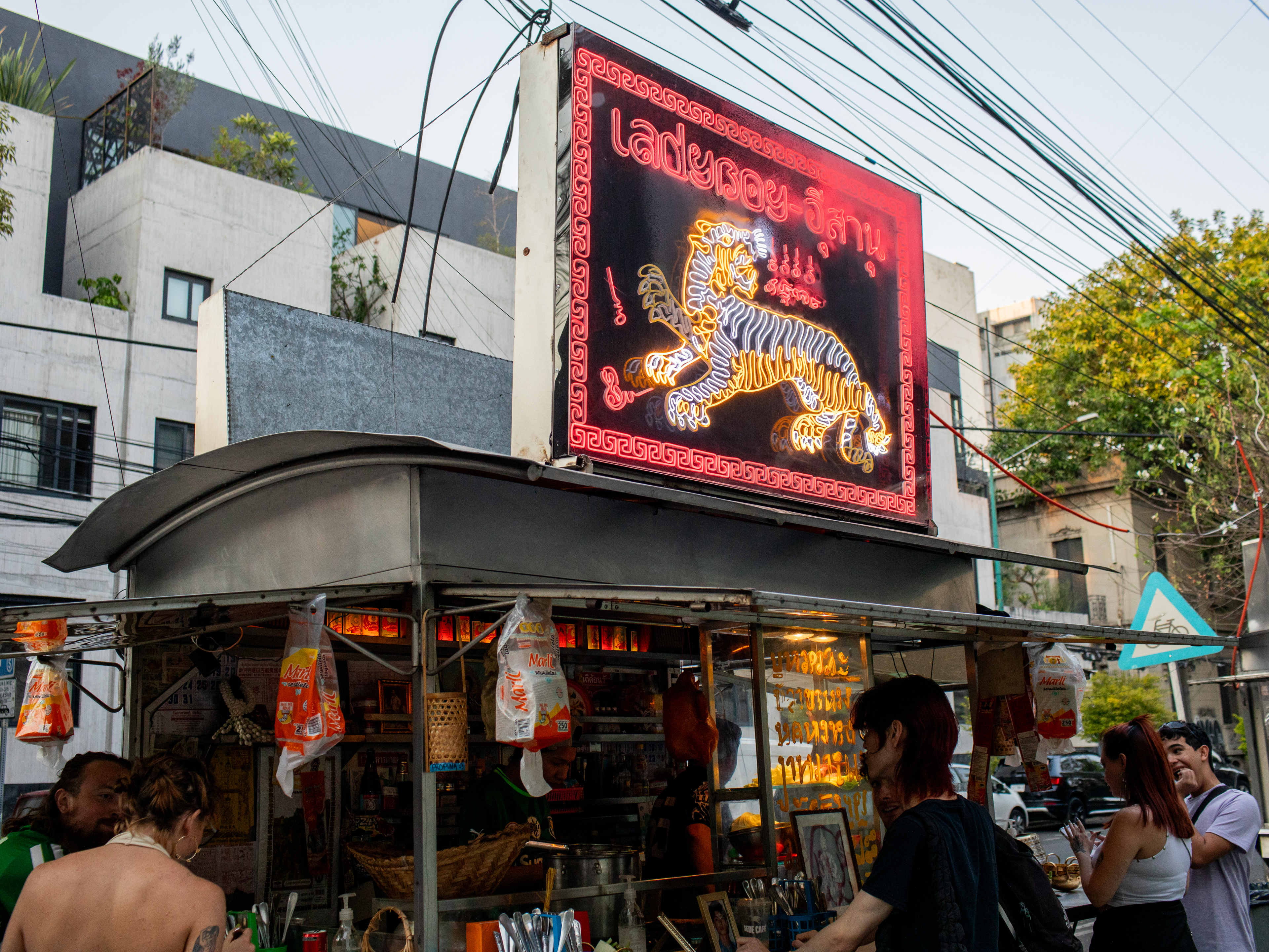 "This Thai food stall, named in honor of a late chef and friend of the owners, is the city’s latest sensation—and it’s easy to understand why. The bold, zesty, herby flavors of their street food dishes are mesmerizing. Diners huddle around the stand—which is adorned with neon lights and an array of sauce bottles on the shelves—to eat tum khao pod, a spicy corn salad, and marinated spicy pork and coconut rice, and then counter the burn with a non-alcoholic Colima Cero beer (food trucks can’t serve liquor). Head to this Roma Norte spot before heading to one of the many bars in the area—just make sure to grab a picture inside the tuk tuk that’s usually parked in front before you leave." - guillaume guevara