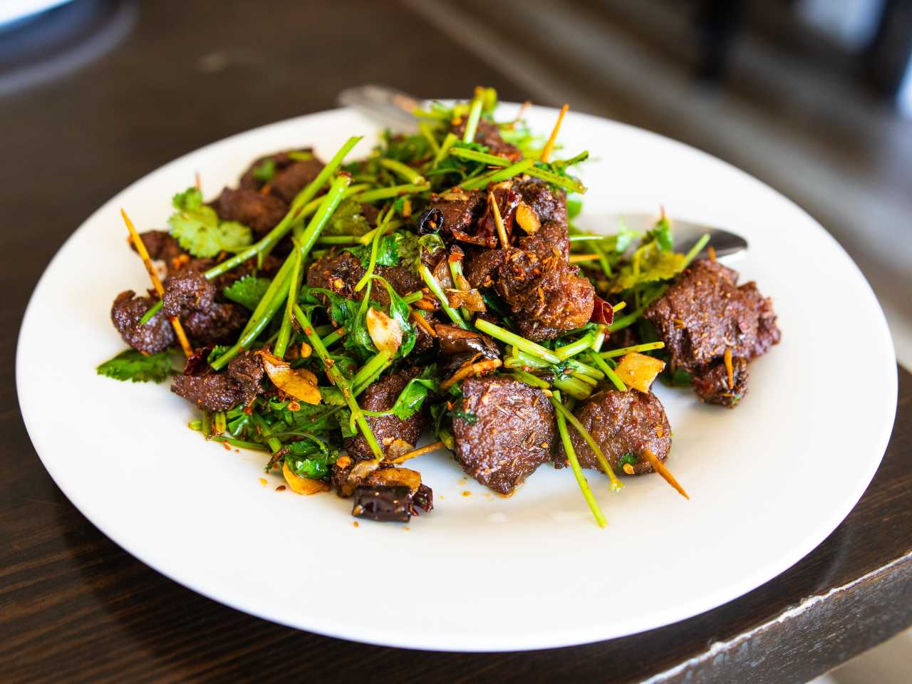 "There are two sides to the menu at Hunan Bistro. The first is labeled “Oriental cuisine,” and filled with dishes like walnut shrimp and kung pao chicken, and the other is described as “Hunan Sichuan Style.” Which means that you have access to a lot of different Chinese food styles from one tiny strip mall restaurant in Cedar Park. Most of the time, we find ourselves ordering indiscriminately from both sides of the menu. Start with an order of spicy toothpick lamb for the table, then get the Grandma Braised Pork Belly—a bowl of incredibly tender pork belly swimming in a slightly sweet, sticky sauce that goes great with a bowl of hot rice." - nicolai mccrary, raphael brion