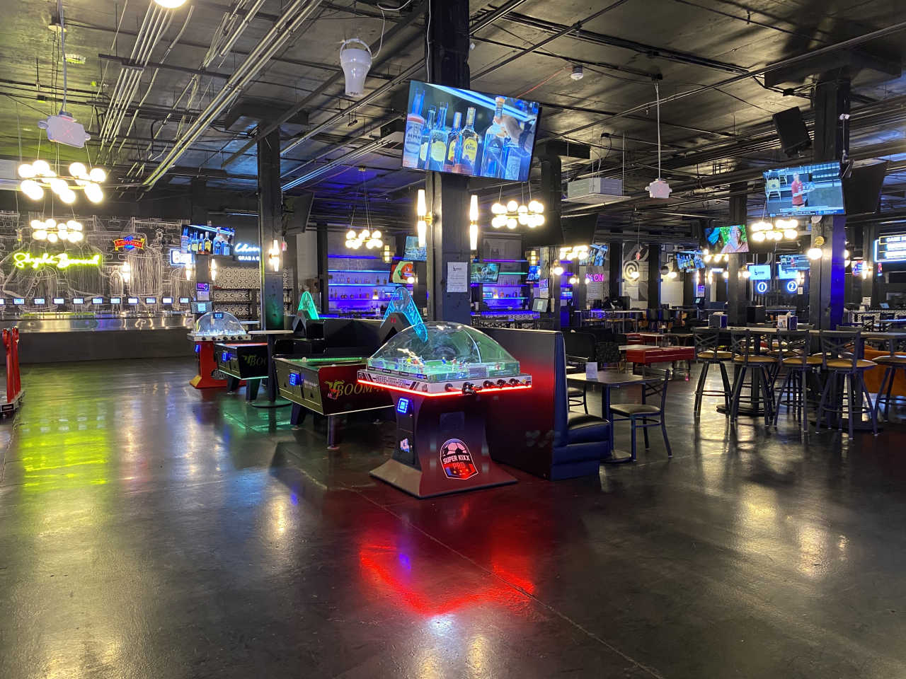 Arcade games, beer wall, and food for a fun night out
