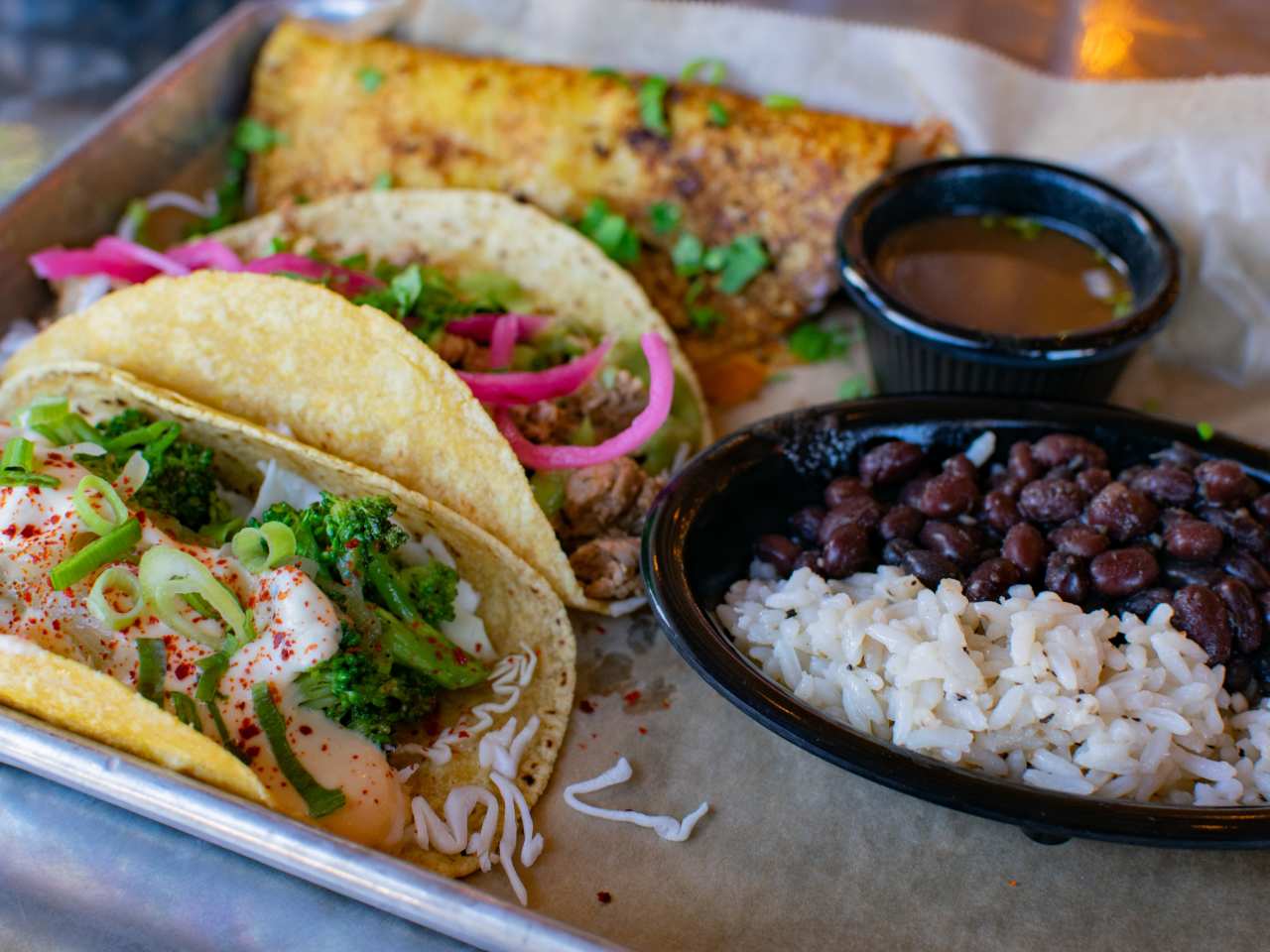 "Ogunquit is a quaint seaside town where you should make a pit stop to check out all the little gift shops, fun bars, and oceanside views—or even consider spending the night in one of the town’s waterfront hotels. Treehouse Taqueria is the place in town to unwind after a long day of driving, and walking up its nondescript staircase feels like arriving at your cool, free-spirited friend’s tropical cabin. The backyard is quiet and has a small fire pit, while the covered patio lets you enjoy the breeze without putting you at risk of baking in the sun. Their $20 mix-and-match taco plate comes with options like chicken tinga, birria, and jackfruit al pastor, but the best one is the veggie taco with bright broccoli, queso blanco, scallions, and chili flakes. Sweet, tropical drinks are also tailor-made for enjoying on a lazy summer afternoon, and they also do 32-ounce cocktail buckets for $20 if you’ve been relieved from driving duties. We haven’t been here yet, but want you to know this spot exists." - Team Infatuation