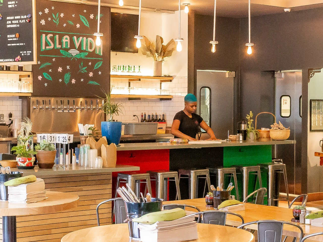 "Time outs are a human need as vital as water or speaking loudly into wireless earbuds. And while there are a lot of ways to unwind after a long day or bad week - from binging on episodes of The Real Housepets Of Greenwich, Connecticut to meeting up with your friends at a bar to boast about how your job is harder than everyone else’s - if you’re in the Fillmore, you could just go to Isla Vida instead. When you walk into this Caribbean spot for dinner after a long day, by the time you sit down at one of the long communal tables, you’ll already feel more relaxed. From the bright dining room and ceiling tiles to the smell of chickens roasting on spits to the super friendly staff, there’s a distinct change of pace in here versus the outside world, like when the boarding door opens on your plane headed to vacation. The staff really goes out of their way to make sure you have a good time. They’re super friendly, and do things like bring you extra sauces to try with your food just because and suggest you order one dish from the menu the way they like it. By the time you leave, you’d choose these people to do a trust fall with, as a charades partner, or at least thank them sincerely on the way out for the recommendations. photo credit: Mary Lagier The menu here is a mix of Caribbean and Cuban staples, like jerk chicken, congri, Cubano sandwiches, and maduros. Regardless of what else you order, you need to get the jerk chicken. It’s spicy, but not like you’re getting thrown into the sun spicy. More like someone turned up the heat on the hot tub without telling you spicy - the real burn comes after the initial heat and it’s the best thing on the menu. If you and chicken got in a recent argument and aren’t on speaking terms though, the seasonal jerk vegetable plate has the same effect and will leave enough room to try the Cubano that’s crispy on the outside and great in pretty much every other way too. The sandwich isn’t spicy, but like most things on the menu, it comes with one of their many homemade sauces, like jalapeno vinegar or the aji that’s great with the tostones. If this place bottled their sauces, we’d probably head out the door with a few jars each time we came here. You’re not going to walk out of Isla Vida and talk about it for a month, but when you leave for the night, you’ll know you were in the right place. Come here to split a few large plates and some congri with a few friends before turning in for the night or heading to get more work done. You needed a quick break from reality for a minute, and that’s exactly what you’ll get here. Food Rundown Jerk Chicken This is the best thing on the menu. Perfectly cooked chicken covered in jerk seasoning that sticks around for a while, and you’ll want it to. Get this on your table. Cuban-Style Chicken This rotisserie chicken is super smokey and it’s really, really good. If you want some kick, dip it in the aji it comes with. Cubano A really good, classic Cuban sandwich. Crispy, flattened bread with pork, cheese, more pork, pickles, and mustard. It can get a little soggy if you wait too long, but you won’t. Split this with someone else who got the jerk chicken and you’ll be set. Garlic Shrimp Garlicky, sweet shrimp in mojo sauce. Not the best thing on the menu, but definitely deserves a spot on the team. Seasonal Jerk Vegetable Plate This has the same kick as the jerk chicken, but isn’t as heavy. If you’re trying to be healthier, get this and you won’t be missing a thing. Grilled Ribeye Sandwich If we’re getting anything to go, it’s two of these to take with us on a hike. This sandwich has big pieces of steak in a mild jerk sauce on a soft roll with caramelized onions. BBQ Guava Spare Ribs Fall-off-the-bone ribs that are sweet and sticky. The jerk chicken is better though. Avocado Mango Salad This has warm beans in the bottom and it somehow works. It’s also large enough to split with three other people. Congri Beans and rice cooked together. These aren’t spicy, but they are heavily seasoned and should be next to whatever you order. Tostones Make sure to dip these fried plantains in the aji they come with. Without it, they’re a little bland, but that’s nature’s fault, not the tostone’s. French Fries A haybale of fries that you’ll need to grab a claw of to effectively eat. If you’re willing to do that, these are pretty good fries. Maduros These fried sweet plantains can be a little too sweet sometimes. If you’re trying to kick eating candy, order these." - Will Kamensky