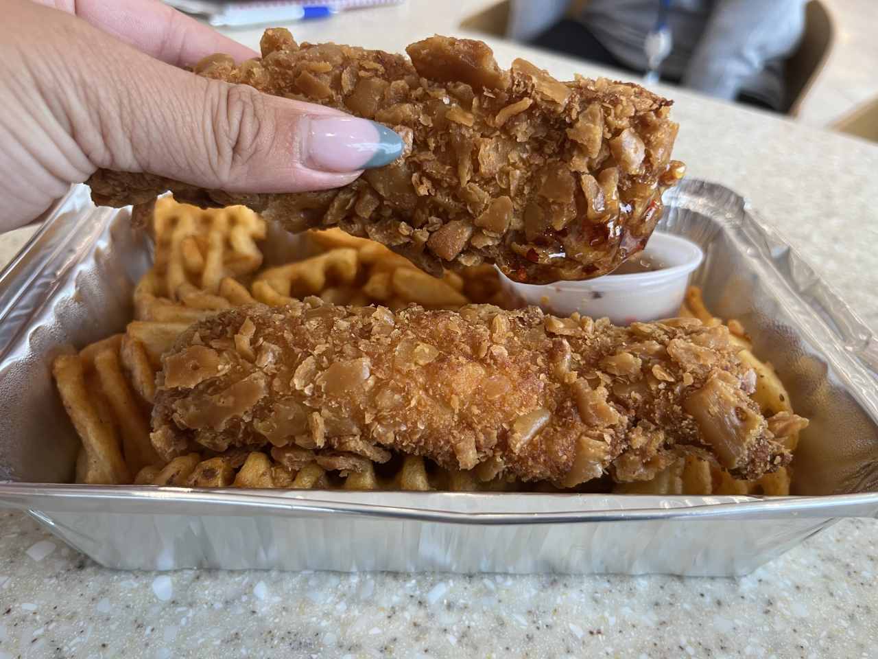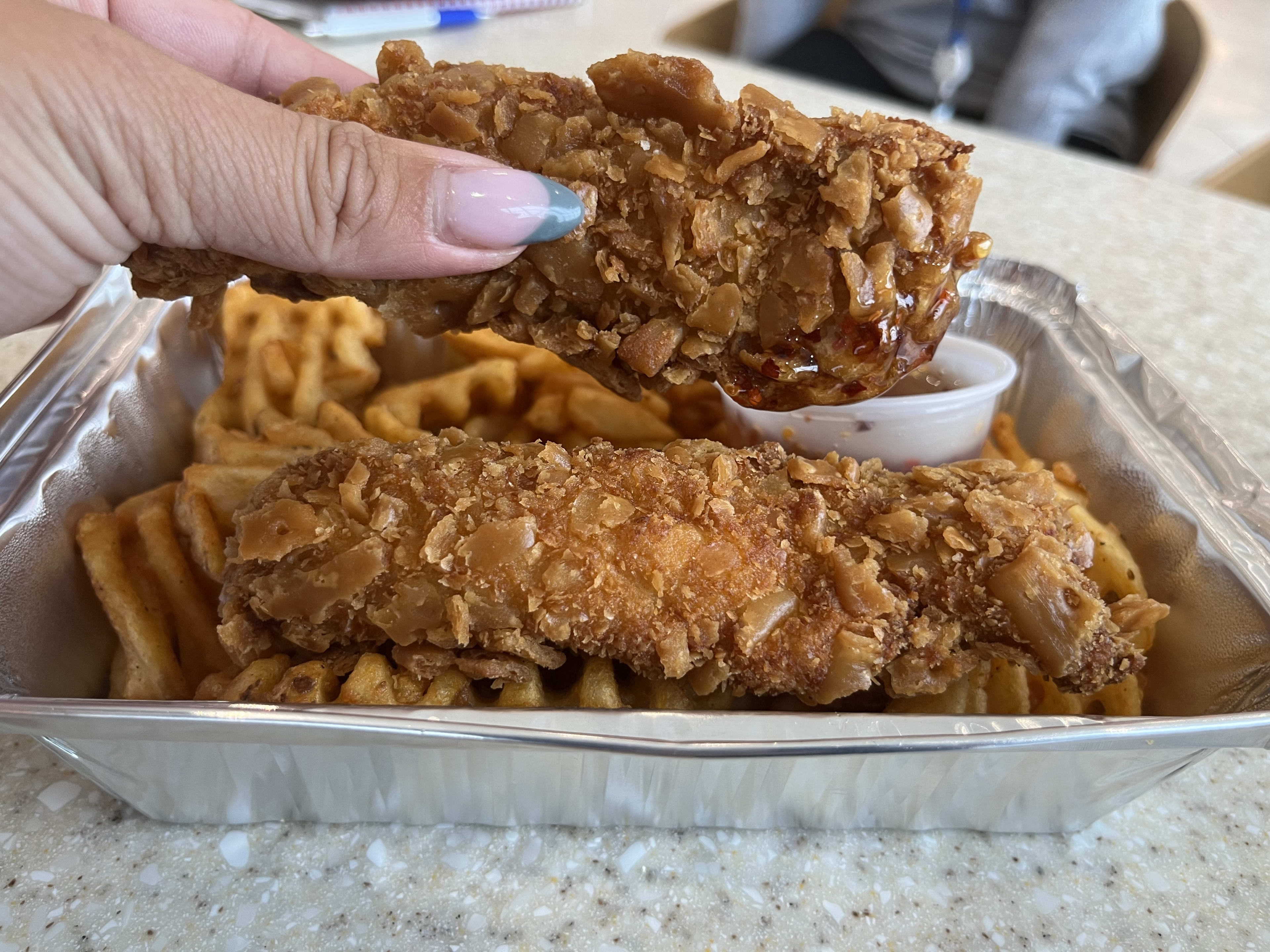 "Ignore all the smoked meats here and just get the fried chicken tenders at Hill Country Barbecue. They have the perfect amount of shatter in each bite and come with waffle fries. You can order them plain or drenched in hot honey, but get the sauce on the side. That way you won’t have to engage in the futile exercise of trying to wipe down a sticky tray table with a dry napkin." - Anne Cruz