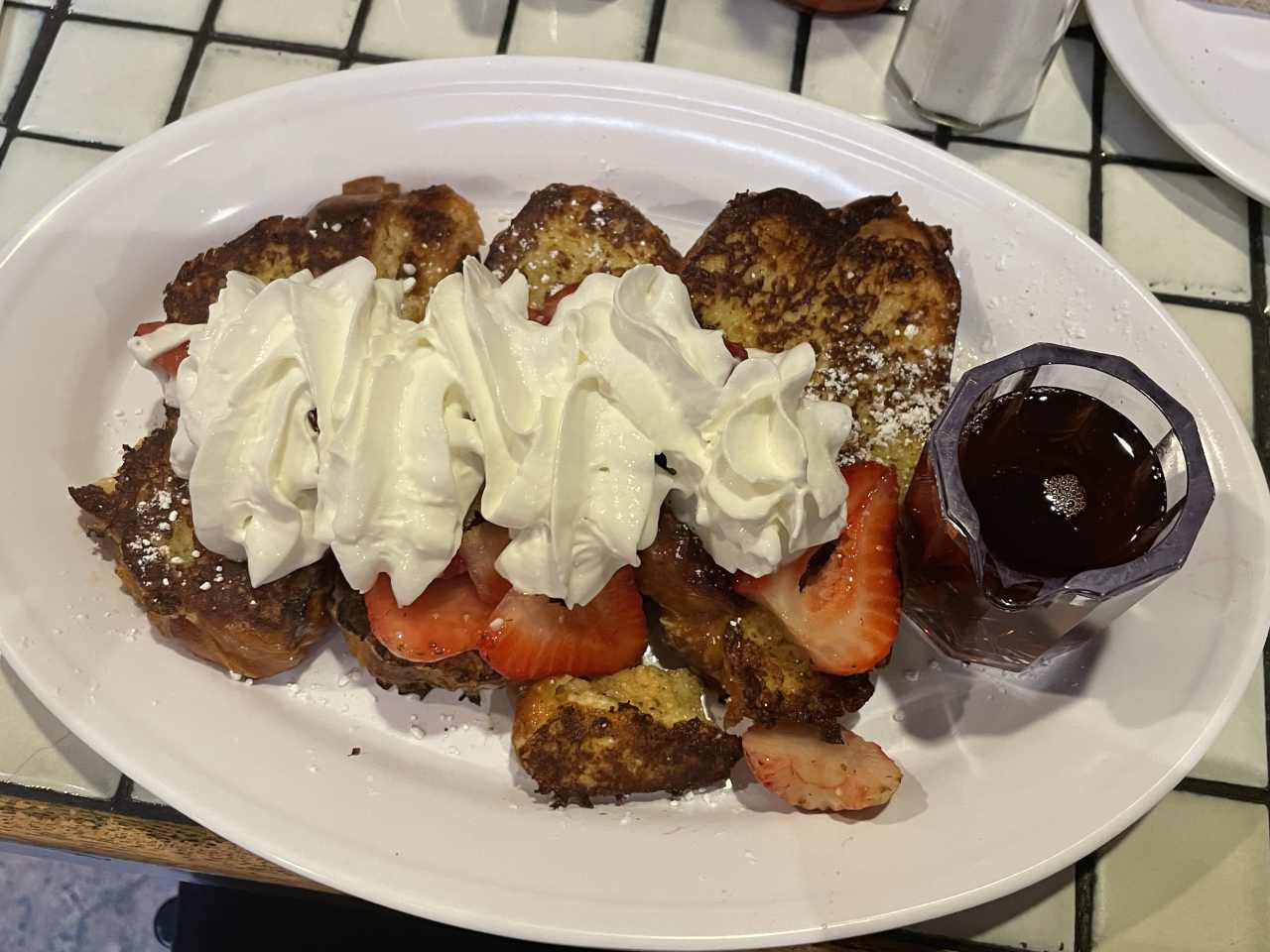 "On any given morning, about half the residents of Montclair roll down from their wiggly, tree-lined streets to start their day off with incredibly strong coffee and, of course, eggs, at Montclair Egg Shop. The diner, housed in a cottage straight out of Animal Crossing, has been around for 50 years and counting, with all the usual suspects—fluffy scrambles, benedicts, and french toast that’s even better when slathered in their house apricot jam. When in doubt, go for their potato pancake, a crisp-edged hash with little chunks of ham and onions. Food Rundown Egg Shop Potato Pancakes This hash-latke-hybrid arrives with crispy edges, a dollop of sour cream, and little bits of ham and onion throughout, plus a side of scrambled eggs. It’s delicious, and even more so with a shake of hot sauce (but isn’t everything?). Challah Bread French Toast If you like challah, and you like french toast, you’ll enjoy eating this for breakfast. Opt for the version with strawberries and a thick squiggle of whipped cream. Apricot Jam There’s a full jar of this on every table, and your only course of action is to smear as much of it as you can on every available surface. It’s sweet, mildly chunky and goes especially well with sourdough, the aforementioned french toast, and even the occasional stray potato." - Julia Chen