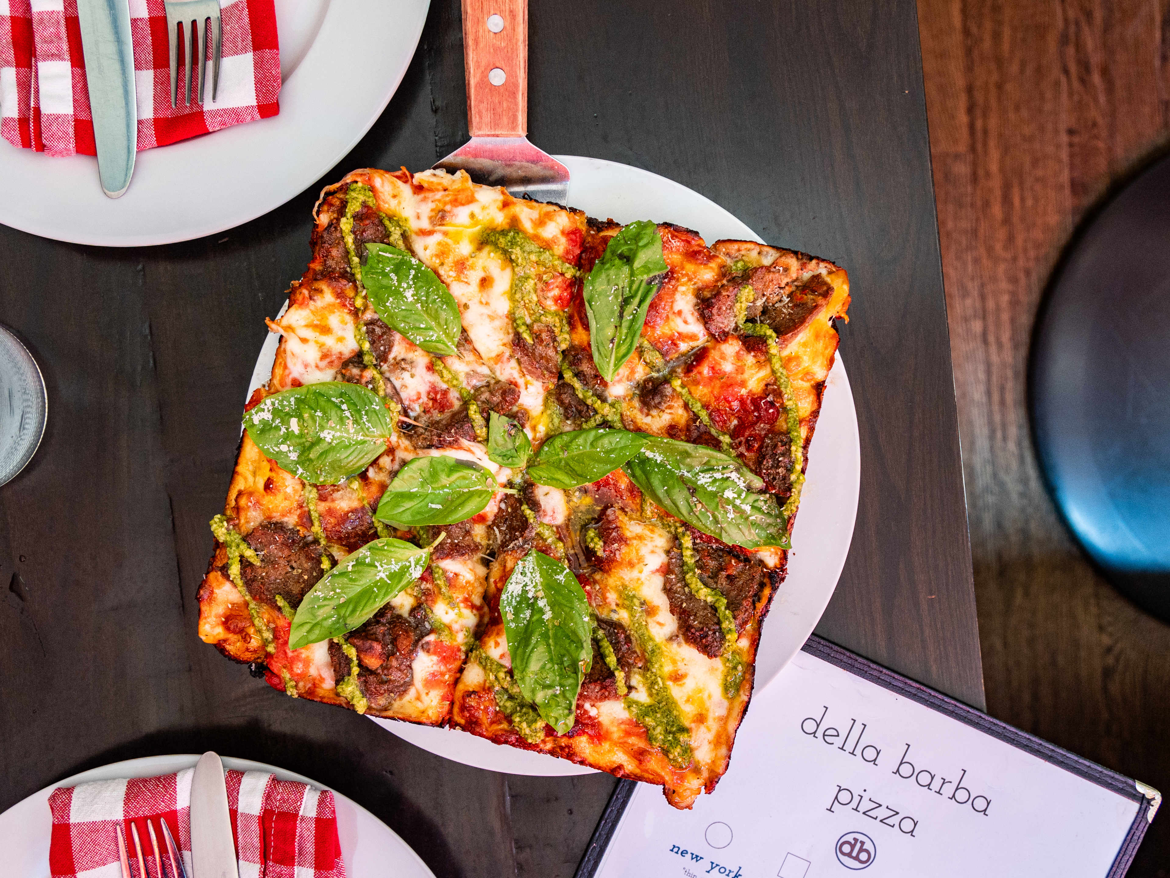 "When you’re ready to upgrade from jumbo slices but are craving something equally filling, turn to Della Barba, which bakes pizzas in three different styles of thickness. Their Nonna Pie is the one we reach for the most—it’s a super-thick crusted, ultra doughy square pizza that can feed one or four, depending on your level of hangriness. Della Barba is our go-to for a lazy Friday takeout meal at home: a Nonna Pie with an arugula and mint salad is the perfect casual dinner when it’s too hot to go far from your air conditioning, or too cold to even think about stepping outside." - madeline weinfield