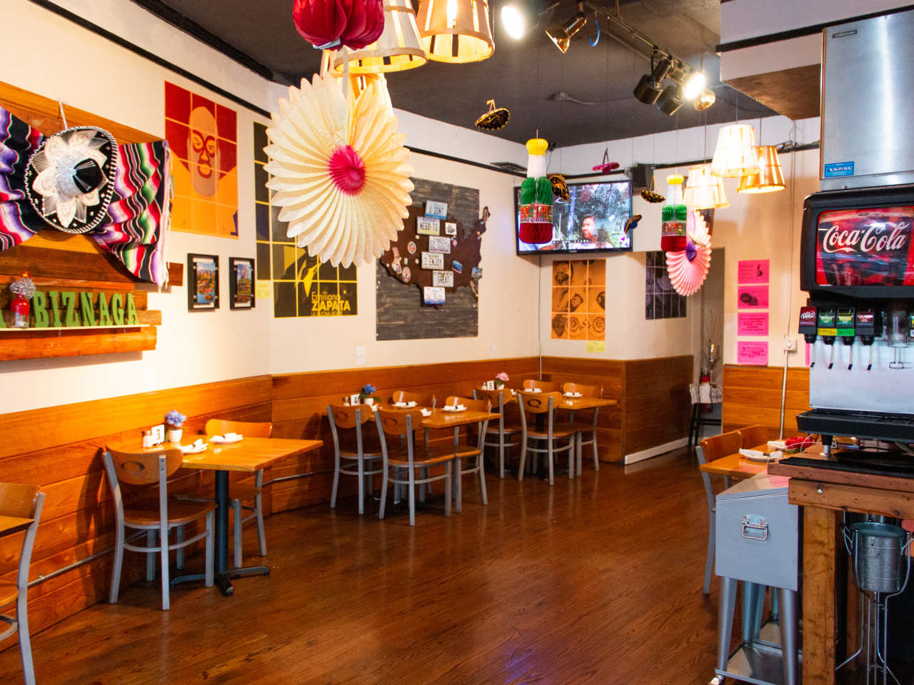 "What differentiates La Biznaga #2 from the other taquerias nearby is their selection of 16 different fillings. You can customize your taco line-up however you want, with options like chorizo, carne asada, crispy beef intestine, or our first-round draft pick: the juicy lengua. Though the tacos are the highlight, they also have larger plates of enchiladas, fajitas, and a steak dinner. With plenty of tables, this bright, vibrantly colored spot works for solo diners, couples, and small groups. Plus, they also have Taco Tuesday discounts, which is an easy excuse to try all of their varieties at least once a week." - sam faye, adrian kane, john ringor, veda kilaru