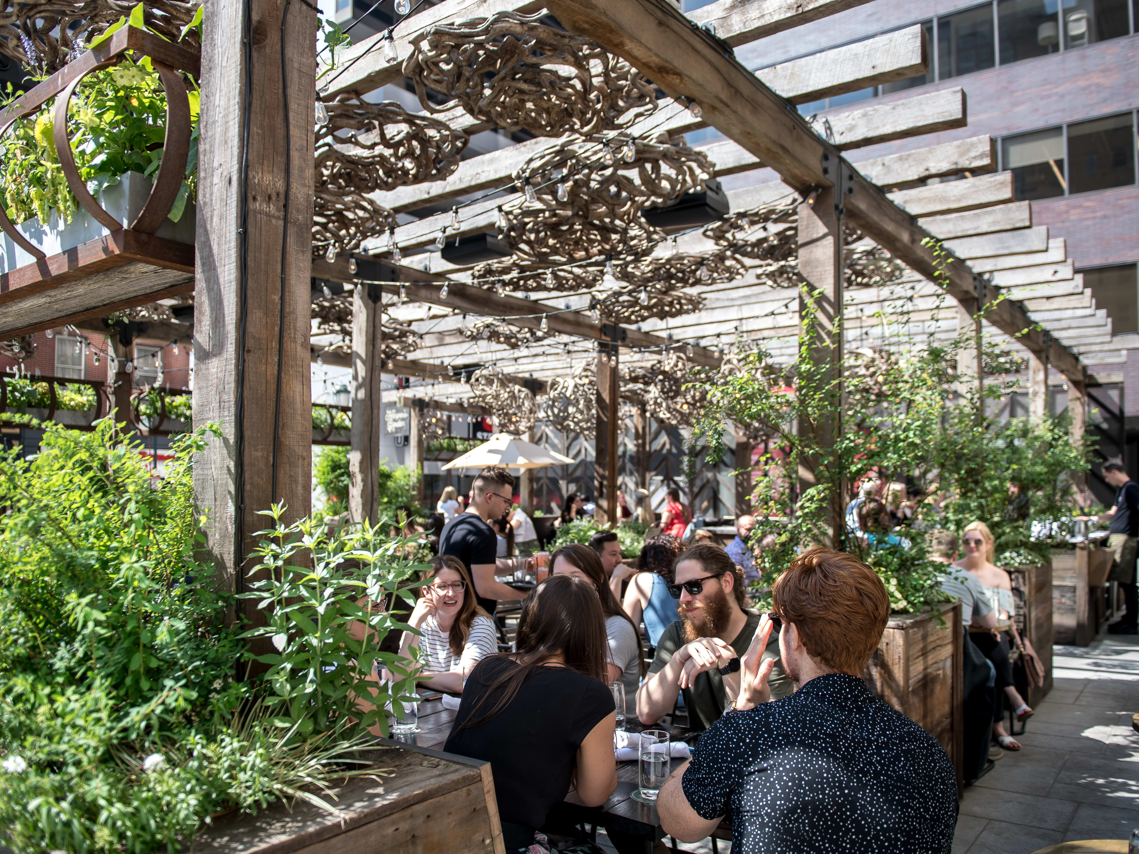 "The Deal: $5 Beers, $5 House Wines, $5-7 Cocktails, And $3-20 Small Plates The outdoor space at Harper’s Garden is the perfect place to sit in Center City, look out at flowers and nearby construction sites, and contemplate the fate of the world (or the Phillies). Their plant-covered deck is coveted, especially for Happy Hour when you can get smoky wings, a double-stacked burger topped with Cooper Sharp, and a martini, all for a discounted price." - candis mclean