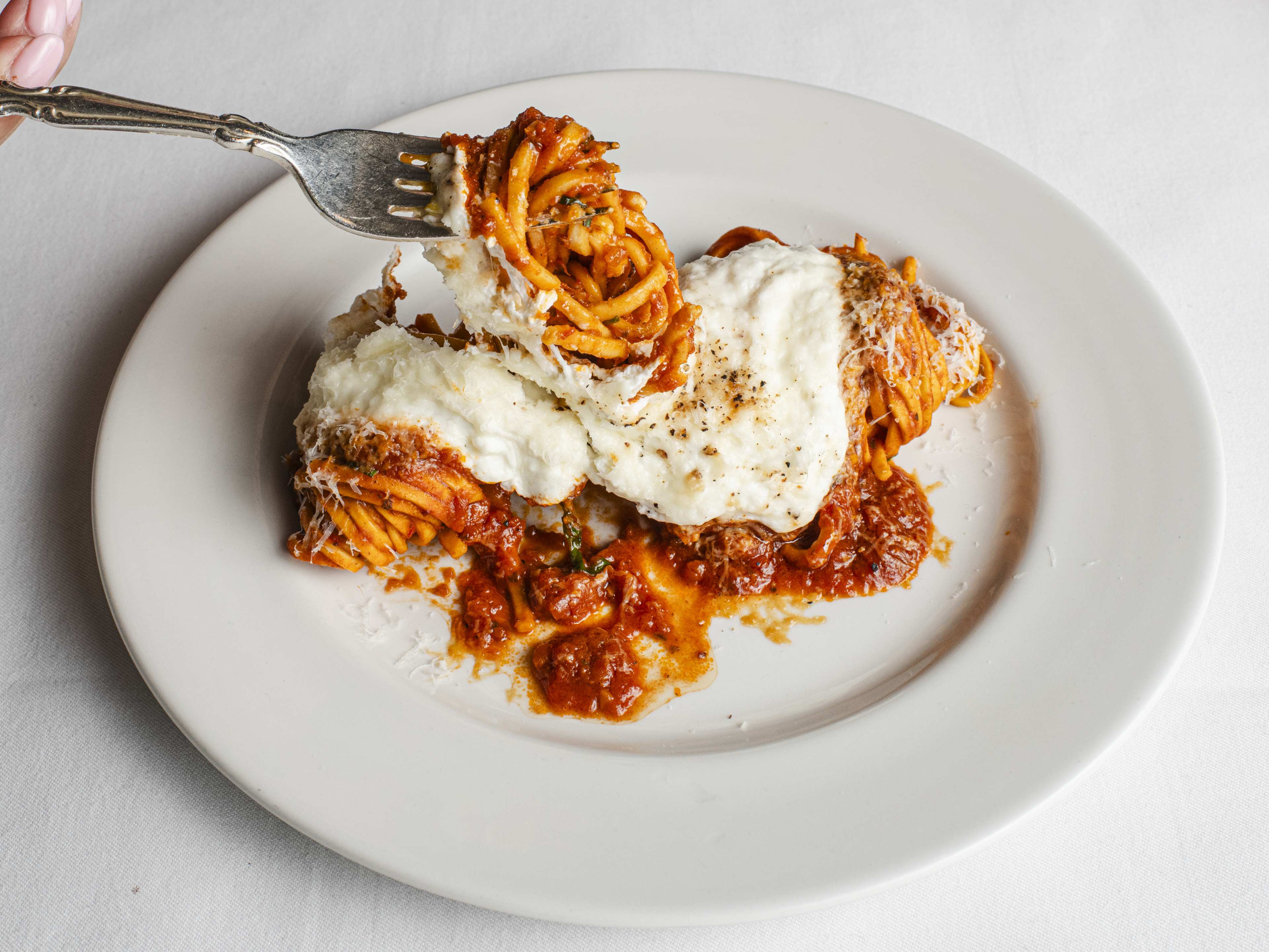 "Located in a basement in Marylebone that feels like the kind of place Charli XCX would have an afterparty, Nina is undeniably cool. The younger sibling of Zephyr and Bottarga, Nina has taken the best parts of both spots, and made it Italian. Raw yellowtail floating on a generous creamy stracciatella boat, and rich taleggio truffle arancini start your meal on a cheesy high. And mains—classic spaghetti in tomato sauce elevated with more stringy stracciatella, and chicken milanese so big it might well be the whole chicken—do a good job of maintaining that high. It’s easily one of London’s best and most exciting Italian restaurants. For a reservation in the immediate future, have a click around until you find a nocturnal 9pm slot, but for a primetime table, delayed gratification is the name of the game. They take bookings up to five months in advance so do future you a favour and secure one now." - jake missing, rianne shlebak, daisy meager, sinead cranna, heidi lauth beasley, heidi lauth beasley, sinead cranna, rianne shlebak, heidi lauth beasley, heidi lauth beasley, jake missing, heidi lauth beasley, heidi lauth beasley, heidi lauth beasley, sinead cranna, rianne shlebak, daisy meager, jake missing, rianne shlebak, sinead cranna, rianne shlebak