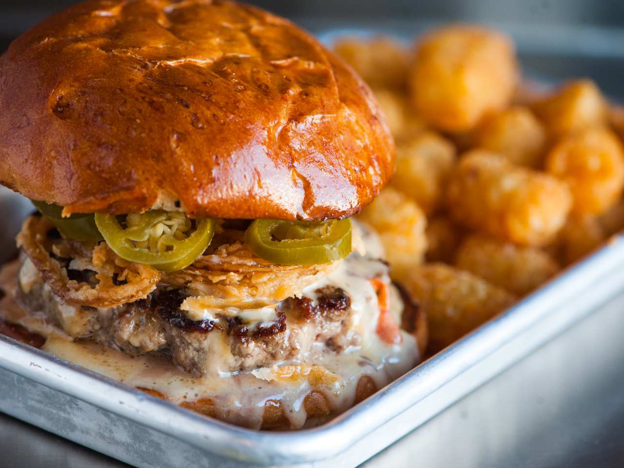 "There are many compelling reasons to head to this Mission spot, which looks like a diner from the 1970s—from the mac and cheese to the fantastic fried chicken sandwich to the decadent tater tots topped with cheese, bulgogi bacon, and onions. But these are secondary to the burgers (and smashburgers). We’re into the Hot Wes full of cheese, pickled jalapeños, and crispy fried onions. " - Julia Chen 1, Lani Conway