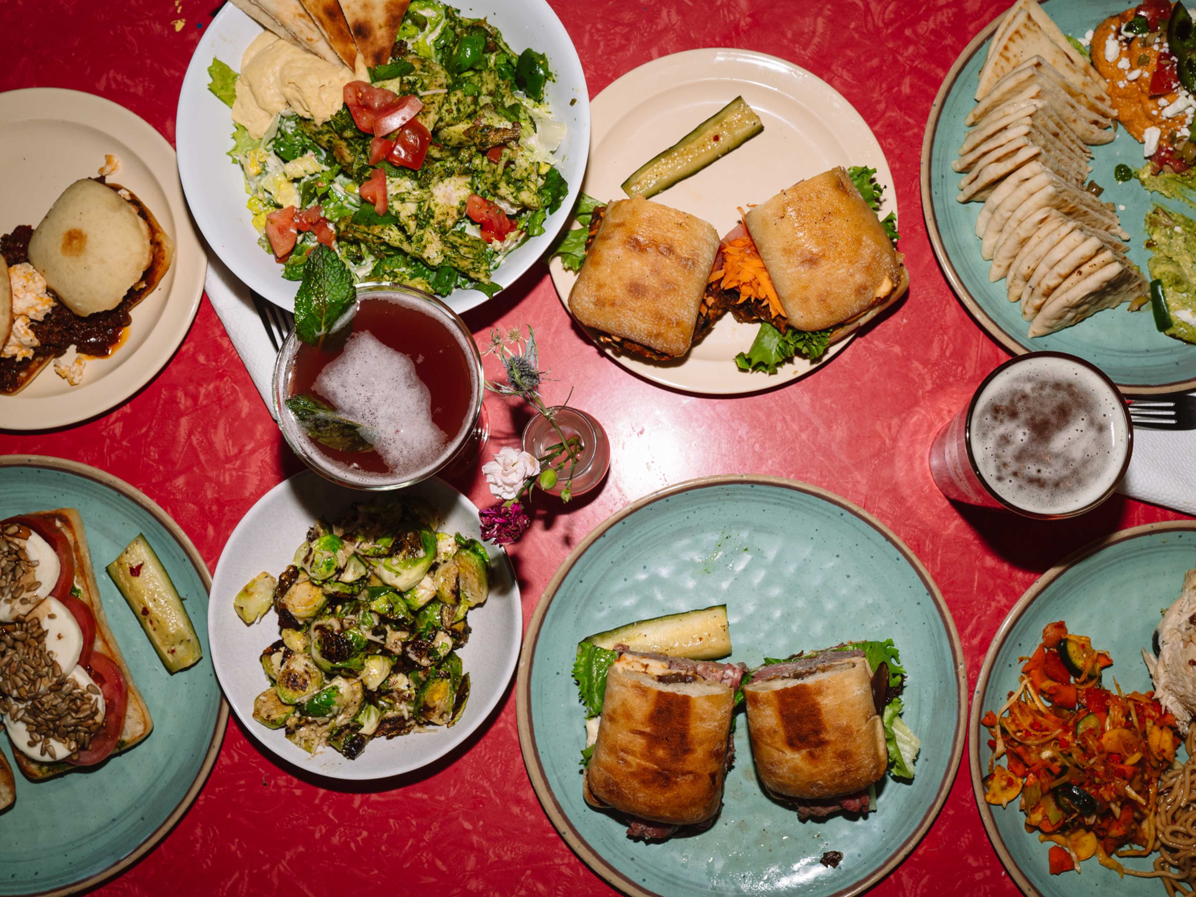 "Phat Bites is Donelson’s long-running artist enclave that feels like Mad Max on acid. Technicolor street art covers the walls, mismatched vintage furniture fills out the dining room, what appears to be the body of an old racecar hangs from the ceiling, and the dim bar looks like the galley of a pirate ship. Once you process the unhinged interior, order from Julie, the chirpy chef/owner who is more than happy to explain the long menu. Phat Bites is an all-day joint with a menu to match, but zero in on the deli offerings—particularly the Hot & Cold Sweats, a towering sandwich stuffed with marinated cold-cut sirloin (served rare), ghost pepper cheese, caramelized onion, and bacon. Always grab one of their Froot Loop Rice Krispies for dessert." - bailey freeman, jackie gutierrez jones 2, ann walczak