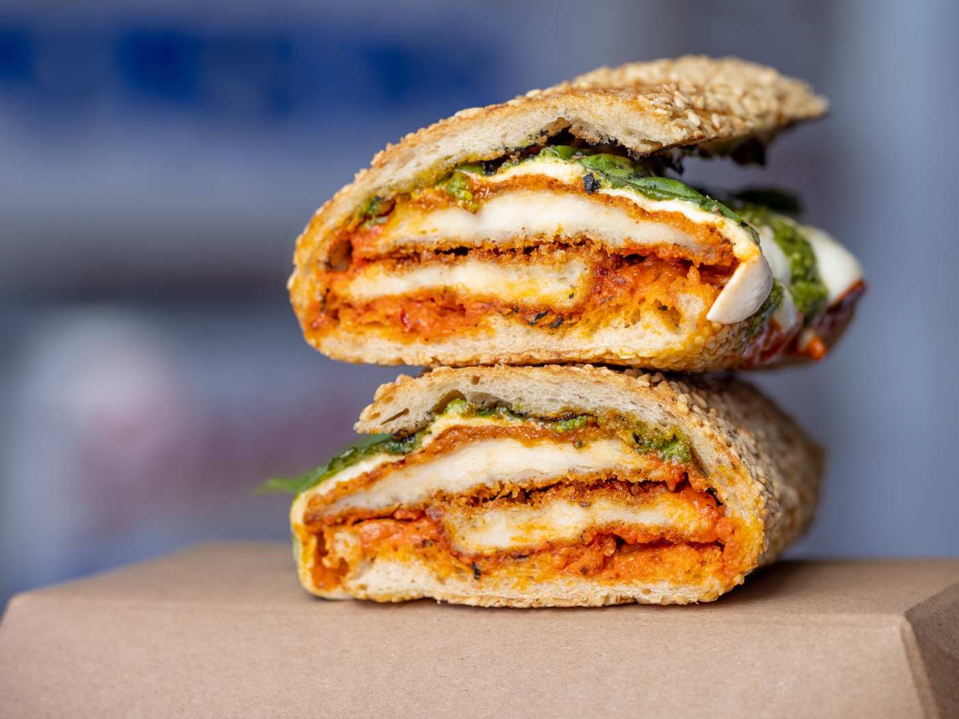 "Another spot that eschews marinara in favor of vodka sauce, Ggiata is an Italian deli in East Hollywood. Their chicken parm sandwich is called the Spicy P, and the breast cutlets are loaded with some extra-spicy and supremely Romano-heavy vodka sauce, then hit with just enough pesto that you get a bit of basil in every bite. The whole thing is served on a seeded baguette from LA’s Bread Bar, which contains the contents of the sandwich quite nicely." - kat hong, brett keating