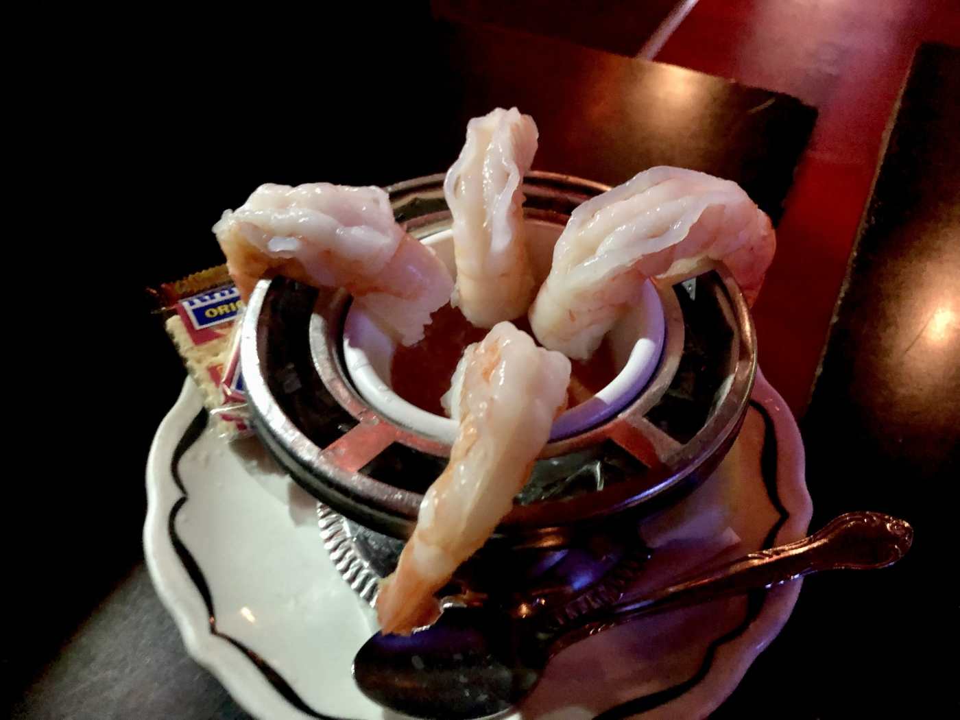 "Walking into HMS Bounty, the iconic nautical-themed dive bar in Koreatown, at any hour of the day is a feast for the senses: dimly lit leather booths, “Careless Whisper” playing from a vintage jukebox, and a come-as-you-are crowd eating baseball steaks and sipping well tequila. In other words, it’s both the absolute last place and the absolute perfect place to order a shrimp cocktail. The straightforward version here—four shrimp, classic cocktail sauce, and two packets of saltines—isn’t only good because of the setting (or the shot and beer combo you just knocked back), it’s good because the shrimp are plump, chilled, and delicious. And at $12, apparently inflation-proof." - brant cox, arden shore