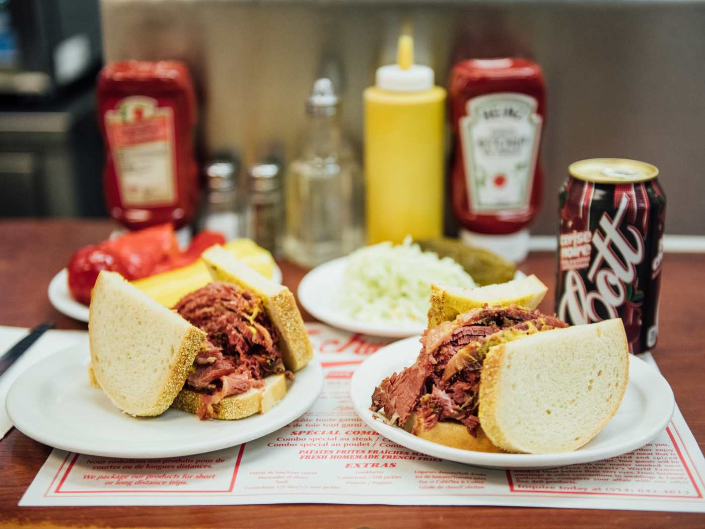 "There’s a lot of smoked, marinated, and steamed beef brisket in Montreal, but the sandwich from Schwartz’s will always be our favorite. It comes on rye with yellow mustard, and the meat is studded with black peppercorns and a secret mix of pickling salt and spices. The “medium fat” option strikes a good balance, and it goes well with a cherry coke, fries, and a half-sour pickle. Schwartz’s is one of the last remnants of the Eastern European Jewish influence on St-Laurent Boulevard, otherwise known as “The Main.” But their smoked meat is one sandwich that pretty much everyone (including Celine Dion, who’s now part owner of this classic hangout) can agree on. Just know that it’s all meat here, so if you can’t live without a cheese blintz, you’ll have to head across town to Snowdon Deli." - Ivy Lerner-Frank