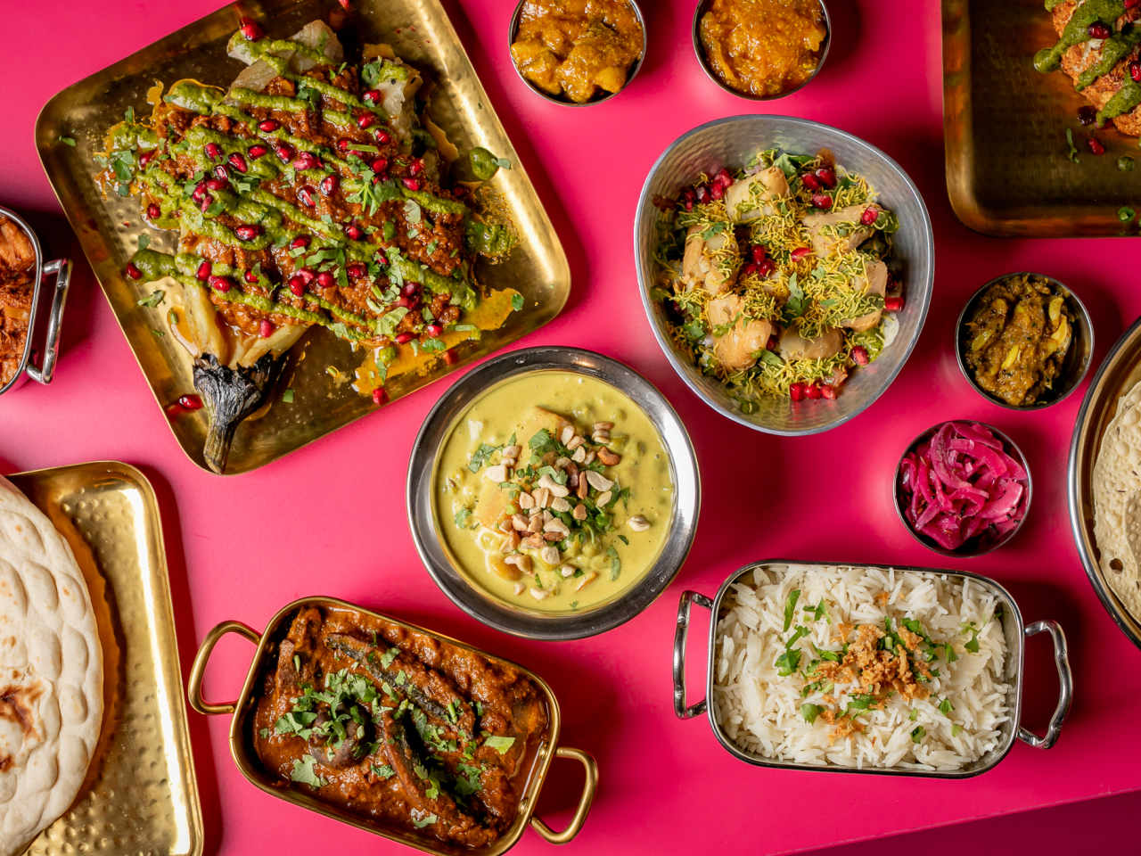 "From the street, Spicebox, a plant-based Indian restaurant in Walthamstow, looks like a pokey takeaway spot (albeit painted in punchy purples and pinks). But the restaurant explodes into an airy dining space which has got cosy family meals and casual catch-ups written all over it. A combination of the amber and fuchsia cushions (the same colour as their pickled onions), and friendly staff means this is a place where you can have an unhurried, relaxed time. The pani puri and tarka dhal should definitely be on your table, but the naans are nothing special so go for loaded bhaji instead. It's a small space so book ahead for evenings when the thrum of chatter is at its loudest and friends nick the best bits of the thali specials off shared plates." - Sinéad Cranna