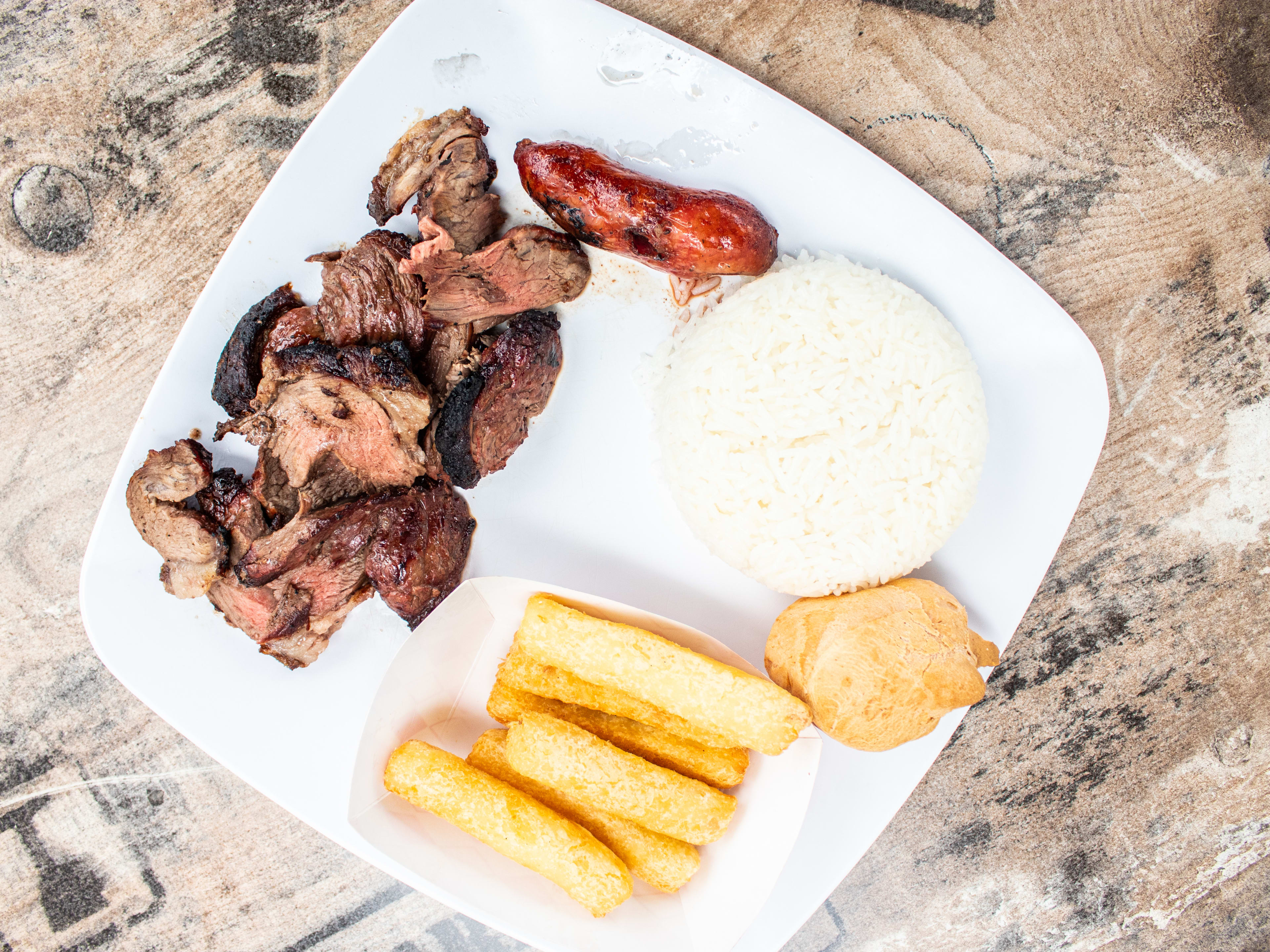 "The Meal: Rio de Janeiro Platter, $13.50 The value provided at North Miami Beach’s Farofa is pretty incredible. The narrow, casual spot has a short menu that revolves around meat: steak, chicken, linguiça, and more cuts of beef cooked on slow-turning skewers. And just about everything on the menu costs less than $15. We like the Rio de Janeiro platter, which comes with two sides and your choice of meat. Go with the picanha, because you should always go with the picanha." - ryan pfeffer, virginia otazo, mariana trabanino