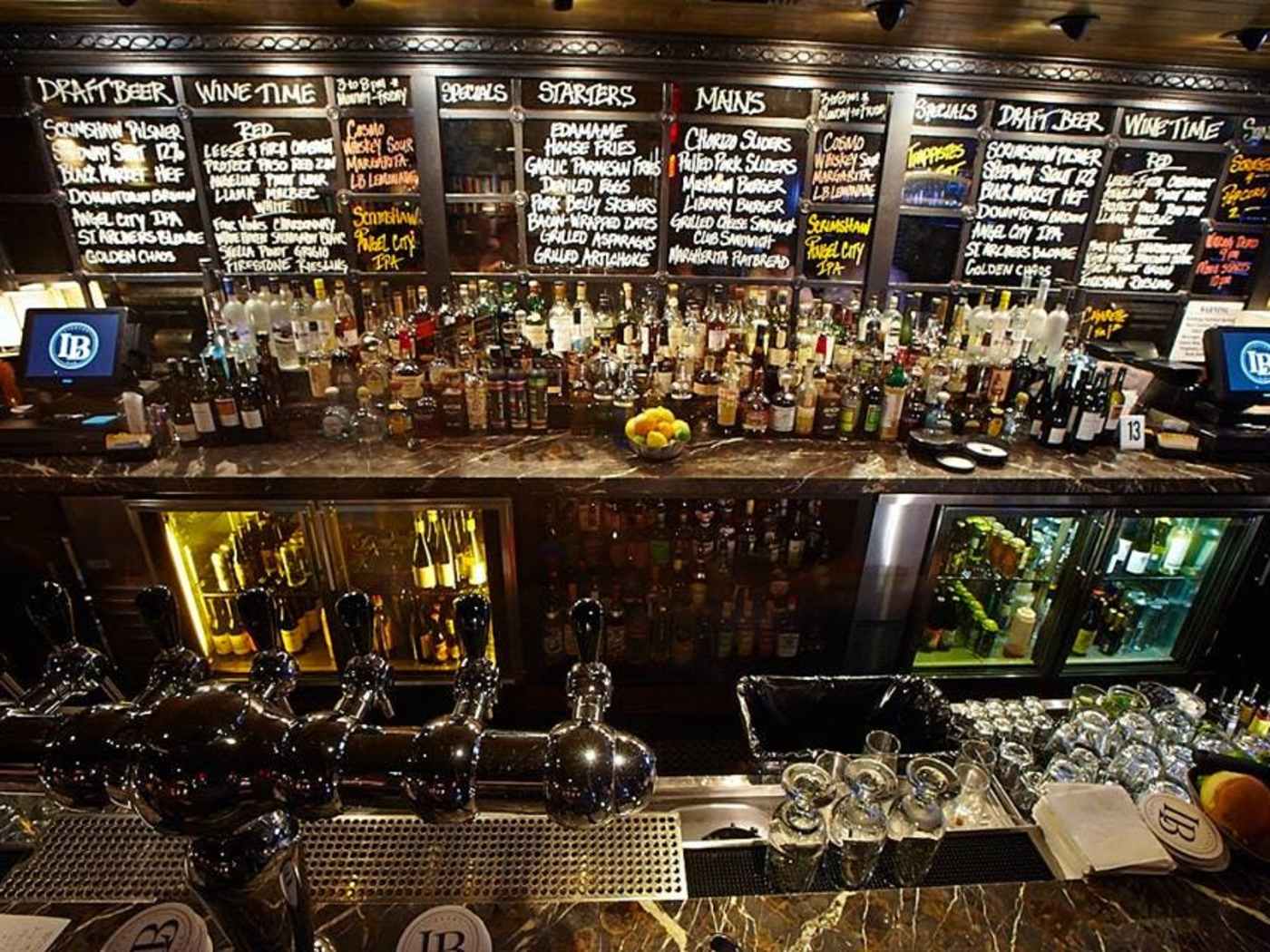 "Library Bar has been a downtown drinking staple for a while now, but it’s after-work scene is the best time to go. The kitschy library theme is definitely present, but not in a way that makes you sad to be there. They have a strong beer and cocktail list ($5 margaritas), and an above-average bar food menu if you want to eat a grilled cheese and feel good about it." - brant cox