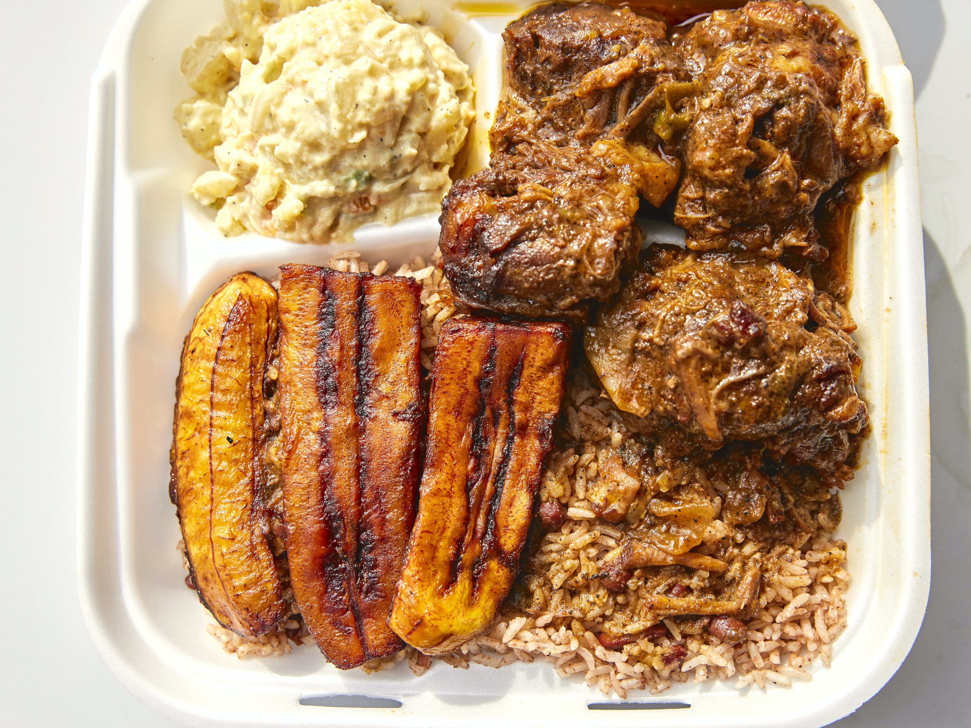 "Little Belize is a family-run Belizean restaurant right in downtown Inglewood. They’re currently only doing takeout and delivery, but that’s fine, because you have to get to the beach anyway. As far as the food goes, start with the panades (fried masa stuffed with hash fish) and garnaches (crispy tortillas topped with fried beans, tomatoes, and onions), and end with either chicken or oxtail stew (trust us, it’s so good you’ll want it even on the beach). Both are immensely savory, but it’s the fried plantains on the side that all your friends will be trying to keep for themselves at the beach." - brant cox