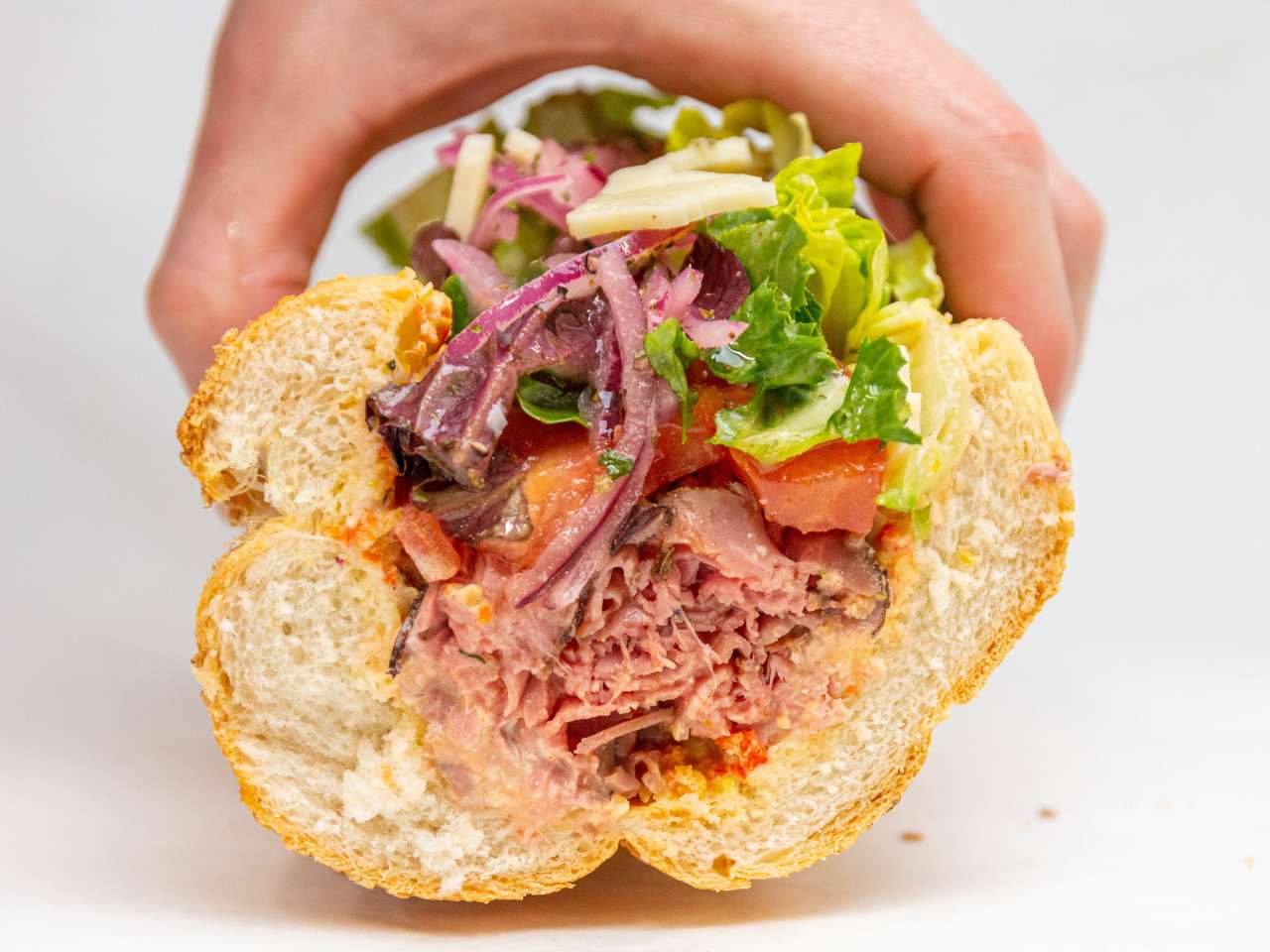 "Everyone needs a Breezy’s in their neighborhood. The cheery Washington Avenue deli and market on the border of Point Breeze and Graduate Hospital comes from the same team as neighboring Porco’s and Small Oven Pastry Shop. It’s basically a corner store run by a chef, so they sell produce, meat, and snacky sweets from local purveyors like Metropolitan Bakery and Milk Jawn. But if you see a line of parents and their scooter-riding offspring, it’s for the smoothies and made-to-order hoagies. They all come with hoagie juice–their signature vinaigrette—but the standout is the super savory Roast Beef Jawn packed with herbed prime rib beef, banana pepper relish, marinated onions, mustard-horseradish mayo, and horseradish cheese. The Italiano is also good, since it’s stacked with Porco’s porchetta. And make sure to grab a salted chocolate chip cookie from Small Oven on your way out." - Alison B. Kessler