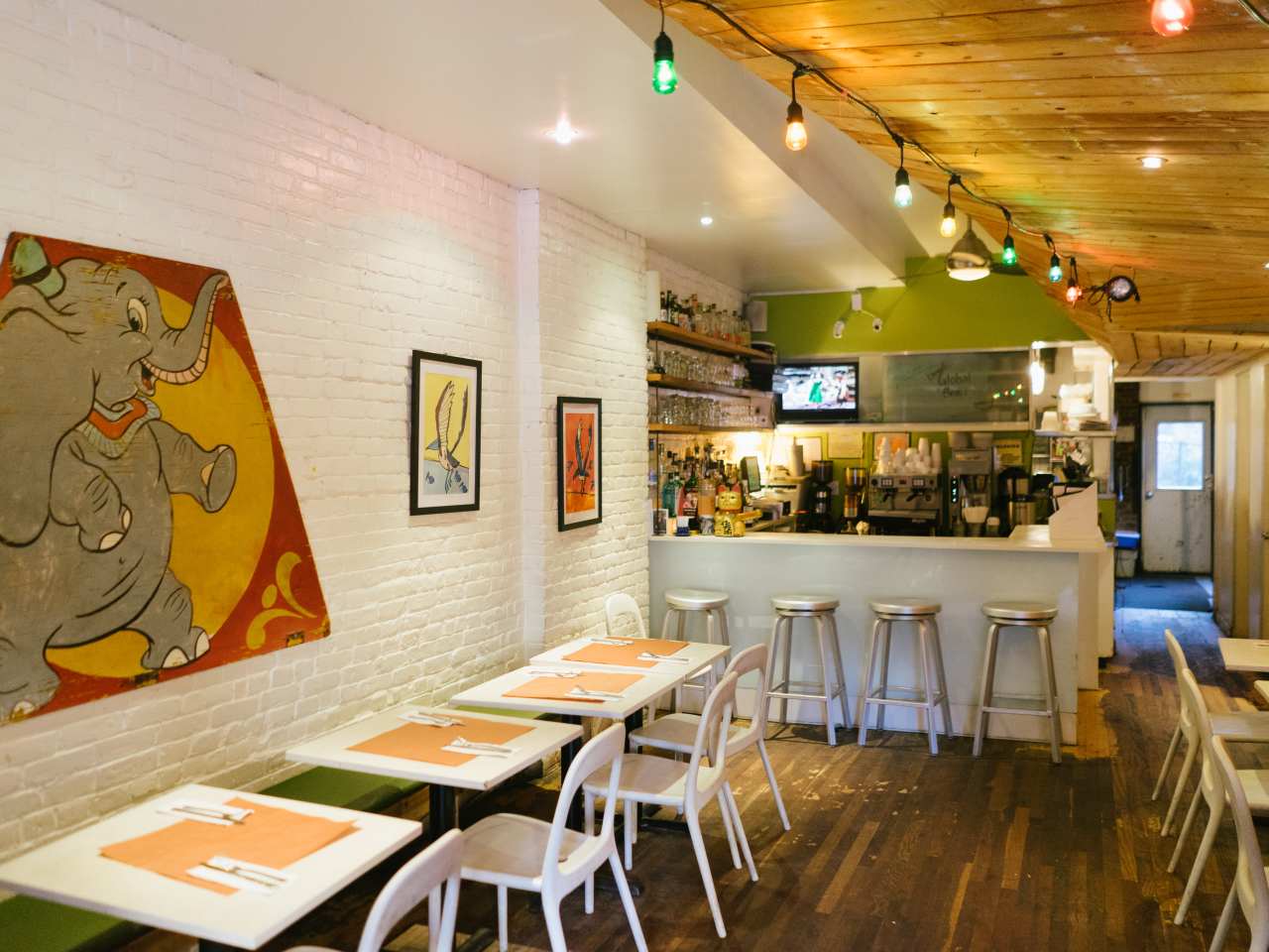 "Sometimes, you just need a neighborhood spot where you can sit down and eat a sandwich or a piece of salmon. That’s what Cheryl’s Global Soul is for. It’s just north of Prospect Park, and the menu consists of things like bowls, burgers, soups, and salads. The space has colorful string lights, a little disco ball, and a bunch of wood paneling that makes the restaurant feel like a tiny log cabin, and it’s open all day. Come here after your run, do your best to wipe the sweat off your face, and grab a seat at the tiny bar in the back." - Bryan Kim