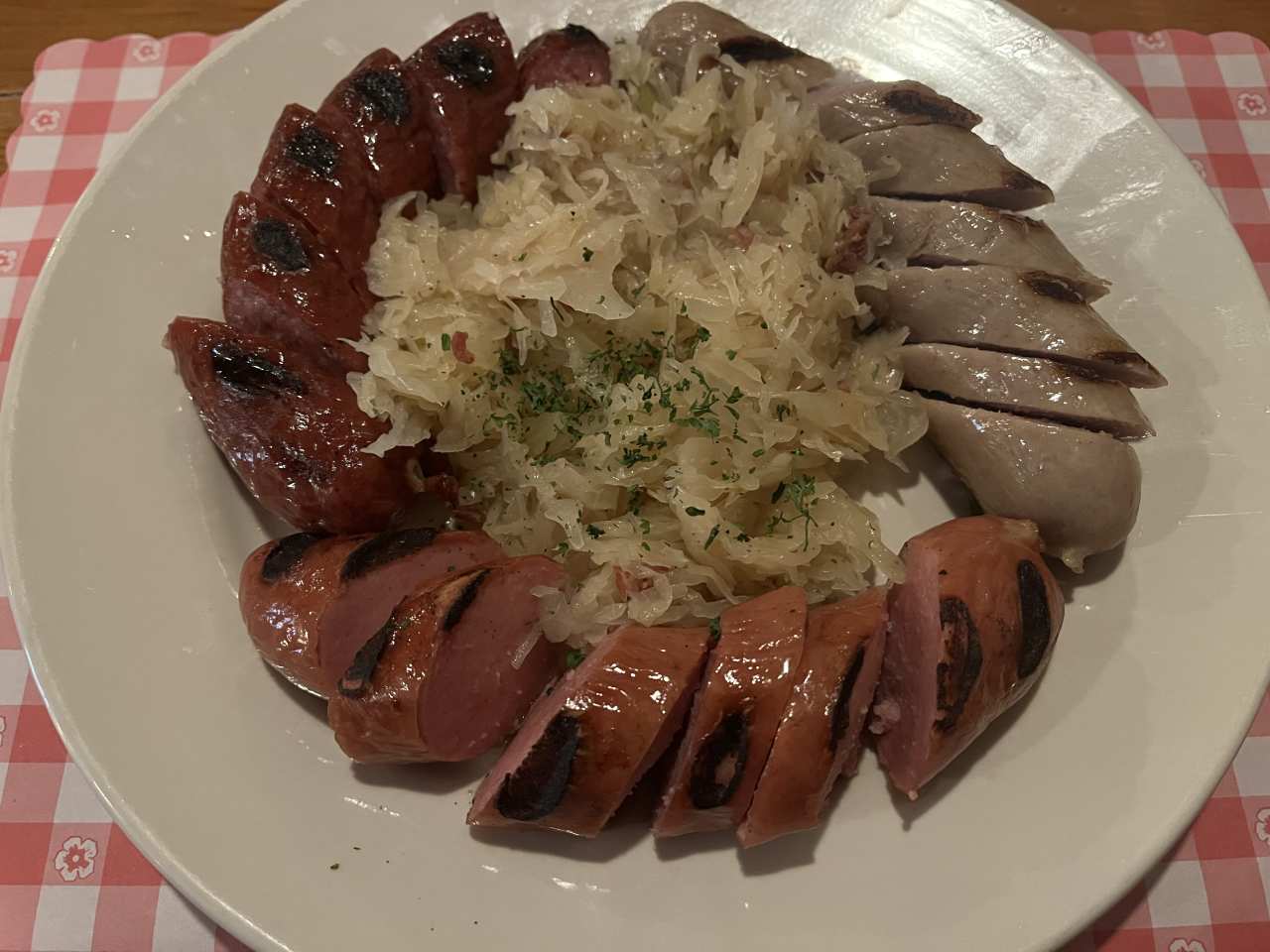"If you're in North Center and want good, unfussy German food and a great selection of German and Austrian beer, get yourself to Laschet’s Inn. This tavern and restaurant has been around since the ‘70s, and it definitely knows who its regulars are. You might encounter some confusion when you ask for a table, but eventually, you’ll be escorted past the kitschy bar into a wood-clad dining room filled with brewery banners and deer heads mounted on the walls. It’s the perfect setting to eat jumbo soft pretzels and some fantastic schnitzel with a crunchy veal cutlet. Food Rundown Jumbo Bavarian Style Pretzel This is a solid pretzel. It’s soft and not too buttery, with enough salt for seasoning, but not so much to send your body into immediate dehydration. You can get it with a traditional Bavarian beer cheese dip, but the lightly spicy Düsseldorf mustard is just as good. photo credit: Veda Kilaru Sausages The hot sausage plate conveniently consolidates all your links into one order. Expect boiled and grilled bratwurst, a spicy beef and pork thüringer, and garlicky knackwurst—each has a nice snap, a hint of char, and distinct flavors. photo credit: Veda Kilaru Schnitzel There are a variety of schnitzels on the menu, in both sandwich and entree form. But we like the wiener schnitzel best. The veal is tender, thin, and pan-fried to perfection. photo credit: Veda Kilaru" - Veda Kilaru