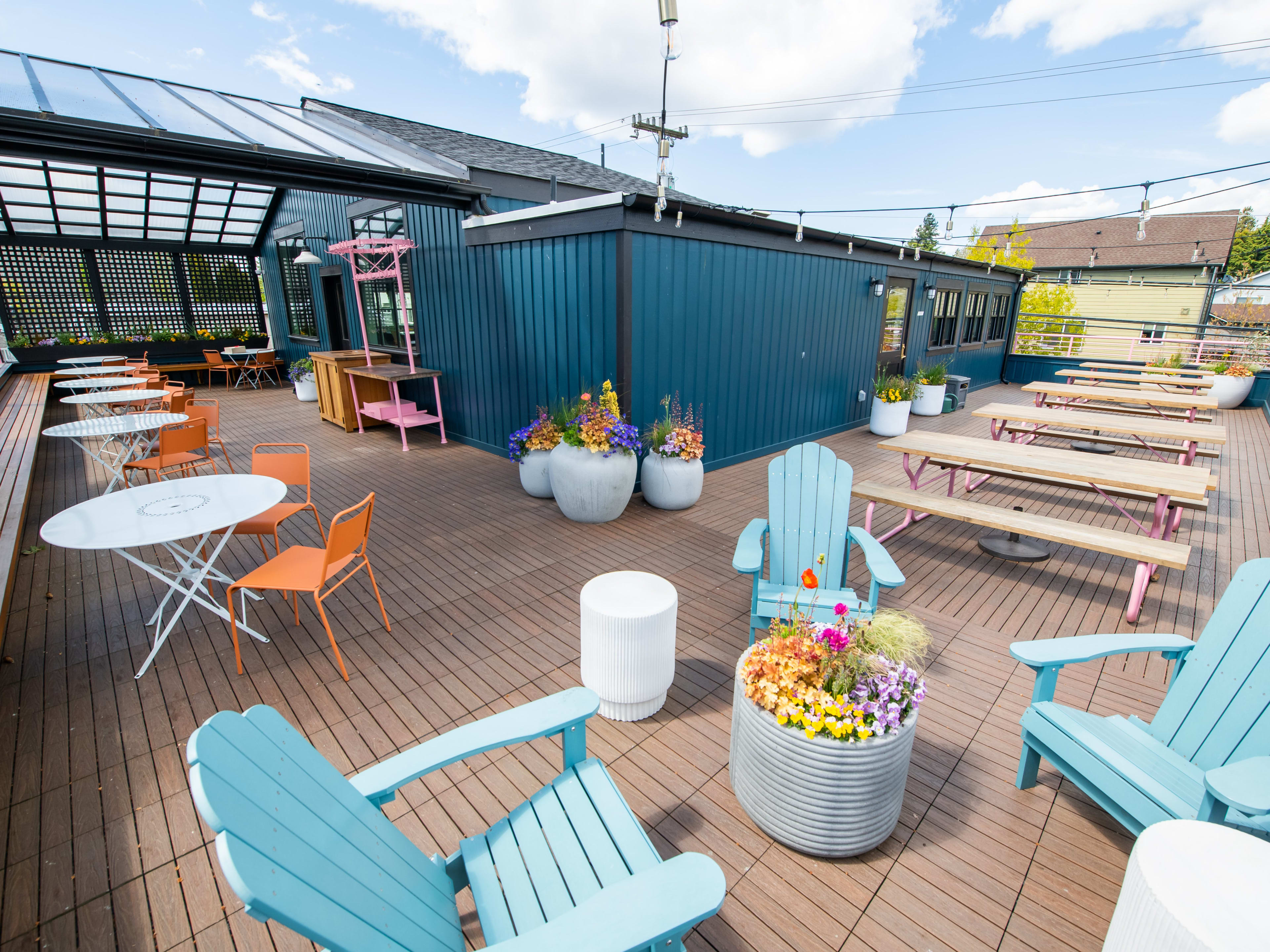 "This bakery in Beacon Hill is not just a great place to grab a cheddar-chive scone, vegan brownie, or soft serve pumped directly into a croissant. It also happens to have a fantastic U-shaped rooftop that’s perfect for an afternoon work session al fresco. And by work session, we mean leisurely iced cardamom rose latte on a picnic table in the sun as you look over the lush South Seattle landscape." - gabe guarente, aimee rizzo, kayla sager riley