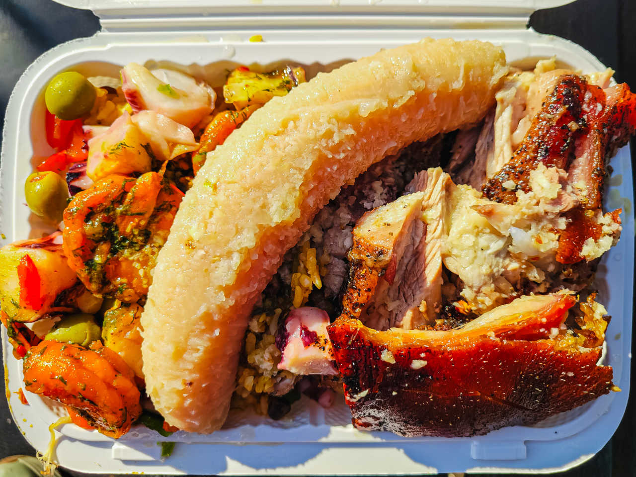 "Though technically closer to the 2/5 trains, this trailer (currently a tent) isn’t much of a walk from the 6 either. It’s the only weekend destination on this guide, but the one-man lechón-carving operation is the best show in the South Bronx, even if you have toget in lineto see it. When you arrive at the front, stand back as Angel Jimenez uses his machete to hack off a piece of pork. Then lean in as he hands it to you, like a sacrament, while simultaneously engaging you in chaotic but enthusiastic conversation. Savor the mouthful of crystal-like skin, melted fat, and salty meat before receiving a blessing in the form of a plastic container full of meat, rice, and whatever else Jimenez has left in his pots." - Sonal Shah