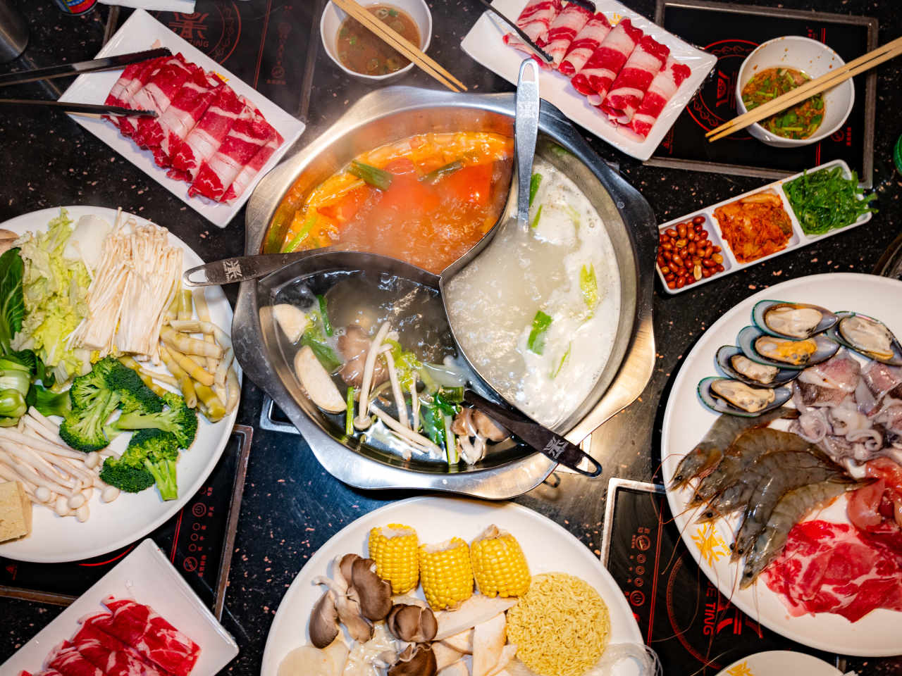 "At this Korean-style BYOB in Chinatown there’s a private room, comfortable booths, and dates fishing for the squid ring they plopped in the kimchi-style broth minutes ago. Boiling soup is the name of the game here. You can get individual bowls of broth, but if your friends are down to try a bunch, you can get up to three in a large basin. The spicy Thai is a must, along with the rolls of lamb shoulder and beef. Your table will get overcrowded with green onions, diced garlic, and a hybrid hoisin-soy sauce you just concocted at the topping station. But all that bowl carrying will help you work up an appetite. video credit: NICOLE GUGLIELMO" - Candis R. McLean