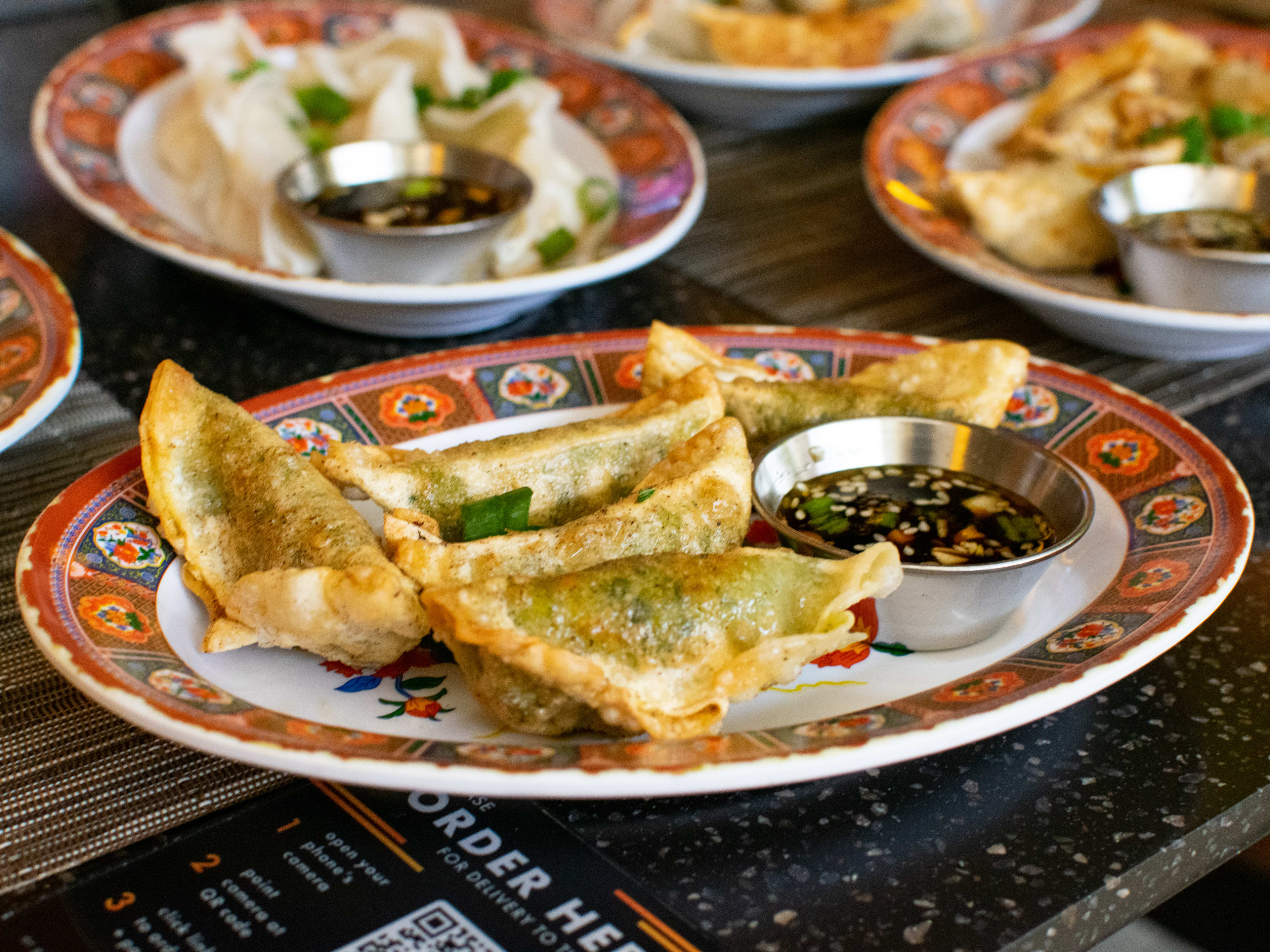 "Little Purse has two locations in Terminal C, a tiny dining room with one central velvet booth near Gate 75, and a larger space closer to Gate 103. Both make for a low-stakes meal you can have at a real table, without committing to spending hundreds of dollars on a dry steak. The prices are affordable for the airport—five dumplings will run you $11—and there are kid-friendly options like mac and cheese and chicken tenders if your toddler changes their mind about wanting lo mein for dinner." - Anne Cruz