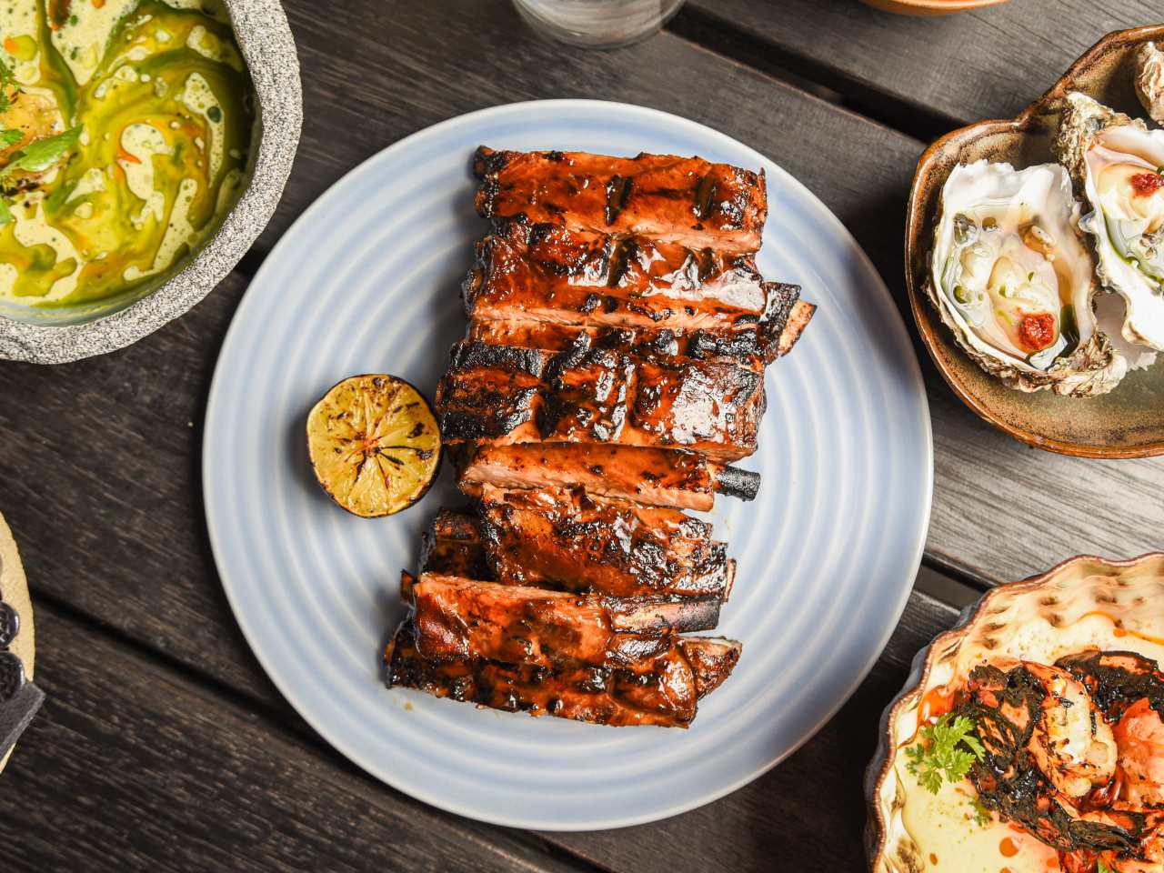 "Although we don’t need to be in a restaurant to watch things burn, side-eyeing the food going up in flames from the chef’s table at Kramer is indisputably more fun than doomscrolling at home. Once you get past the trashy noughties nightclub feel, the barbecued steak and seabass—even the lettuce is grilled—with flavours of Mexico and the Philippines will have you forgiving the fireside prop chains that might incite flashbacks to the Berghain basement. Don’t come here for a romantic candlelit date—consider bringing someone you met in, well, the Berghain basement. We like the grilled prawns, oyster mushrooms, and ceviche, but what gets us most fired up are the pineapple, lime, and jalapeño-heavy sauces, which bring a freshness to the smoky charcoaled meats and fish." - Olivia Ladanyi